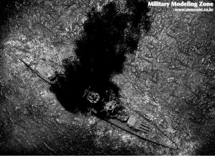 이디오라마의 줄거리는 보시다시피, 그라프쉬페의 최후를 나타낸 것입니다; 피해가 상당하고 적들에게 둘러싸였으며 통신까지 불가능 하여 자침을 택했다더군요;
