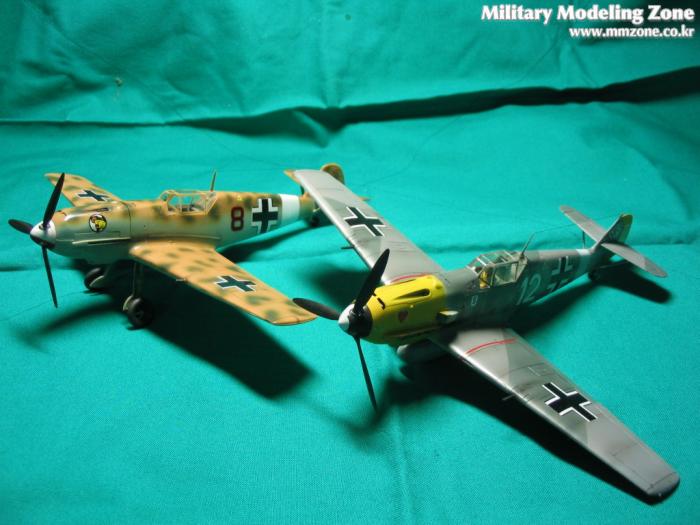 BF109-E4형과 E7입니다(1/48). E4형은 Hobby craft제품이며 E7은 Tamiya제품입니다. Tamiya가 착착 잘맞습니다. 그런데 생각보다는 Hobby craft제도 그럭저럭 만들만 하더군요(특히 데칼은 얇고 색깔이 타미야 보다 더나은듯합니다).