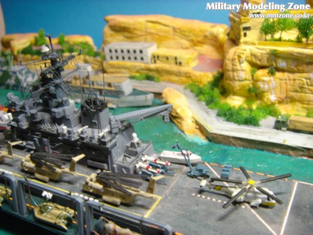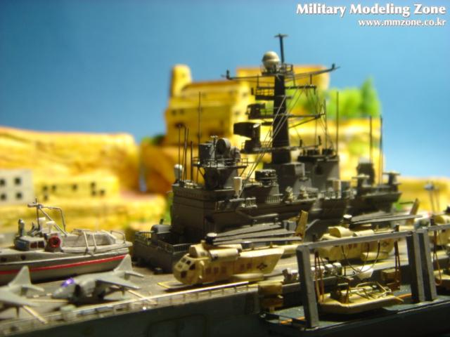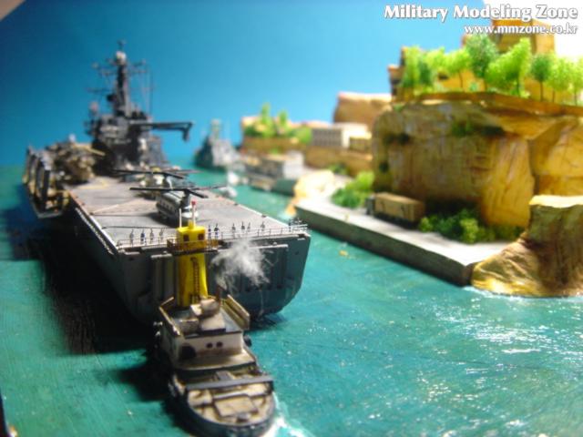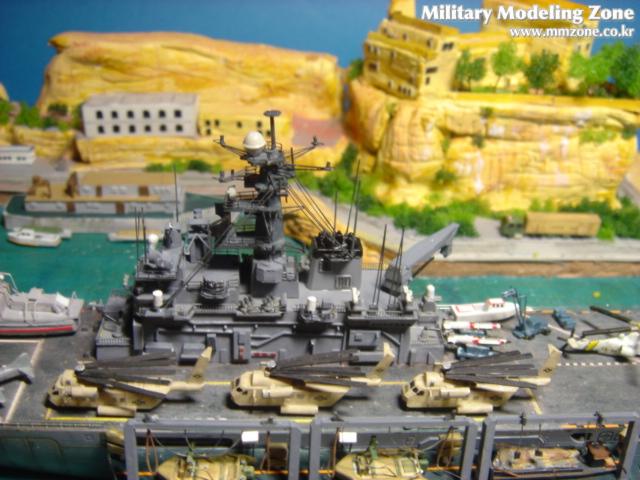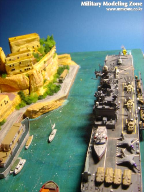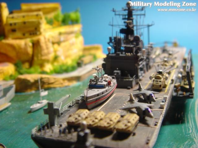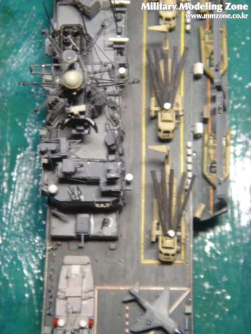 안녕하세요. 경항모??? 입니다. 여러사진을 짬뽕해서 만들다보니 첨 의도와는 다르군요. 말 그대로 내맘대로 자작입니다. 0.5프라판과 런너로 제작. 함교와 갑판에 신경을 많이쓴것이라서 다른곳도 세밀하게 제작해주었습니다. 헤리어기 장갑차 맨뒤헬기는 킷입니다. 난간과 수병은 에칭입니다. 감사합니다.