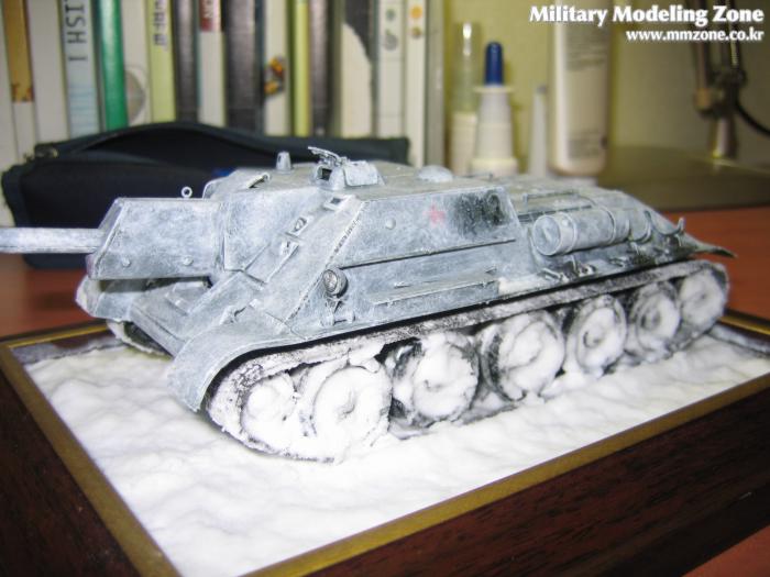 SU-122 동계위장 임니다.. 에어브러쉬가 없어서 캔스프레이로 다크그린으로 도색후 붓으로 동계위장을 해보았습니다..