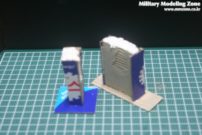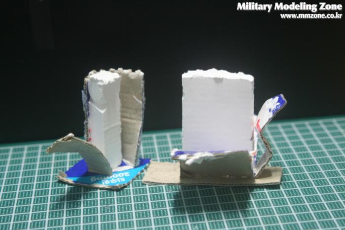 드링크 상자로 만든 거푸집(코팅된 면을 안쪽에 해야 분리가 잘됨.)에 치석고를 부어넣고 양생 중...