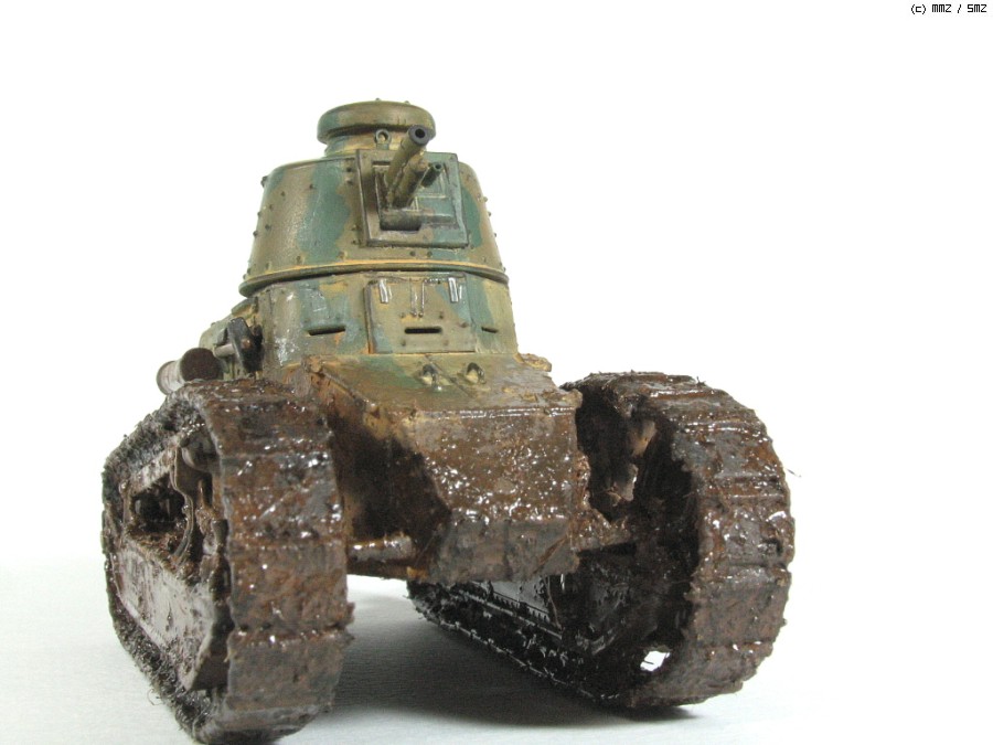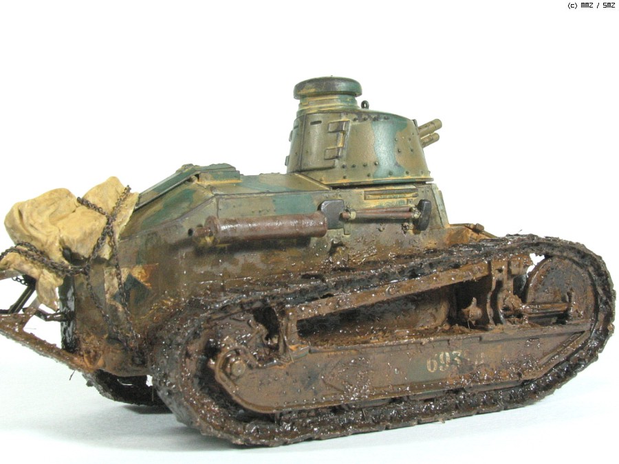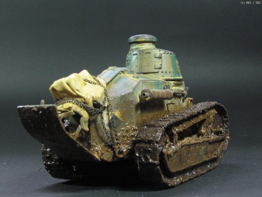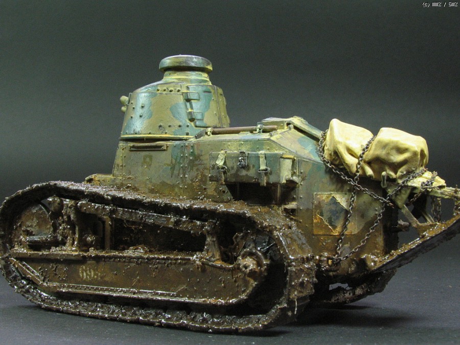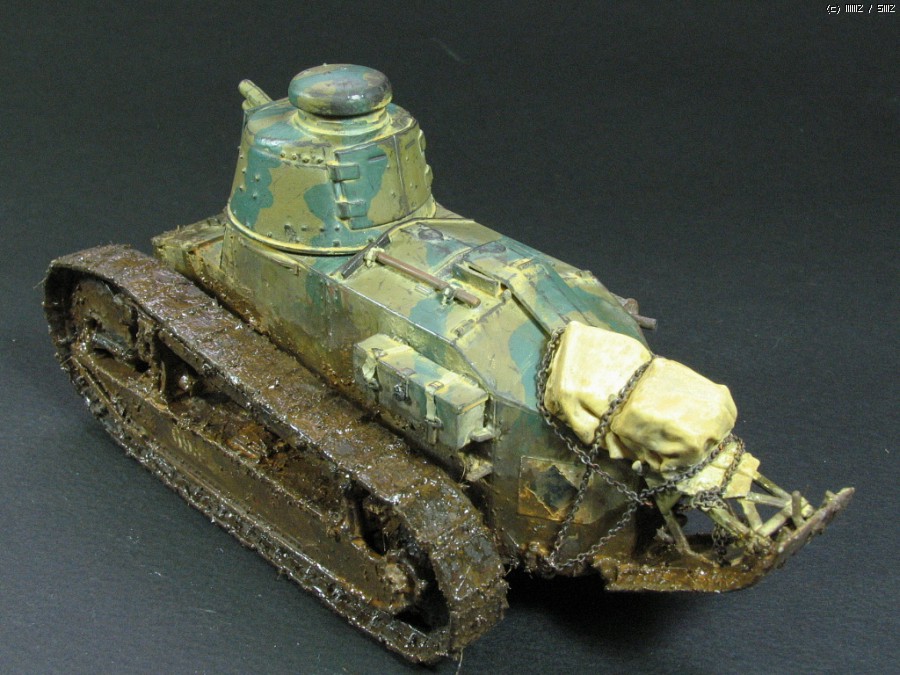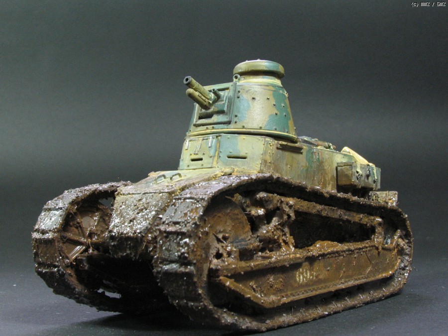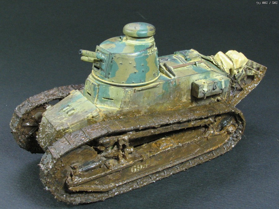 RPM 의 르노 FT 17 입니다. 장구류 묶는 벨트류 와 체인 제외하면 박스 그대로 만들었습니다. 궤도는 어떠한 접착제에도 붙지 않아서, 실로 꼬매고 로드휠에는 순간 접착제 떡칠을 해서 고정, 궤도의 엉성한 디테일을 감추려 진흙이 덕지덕지 붙은 것으로 캄프라치 했습니다.