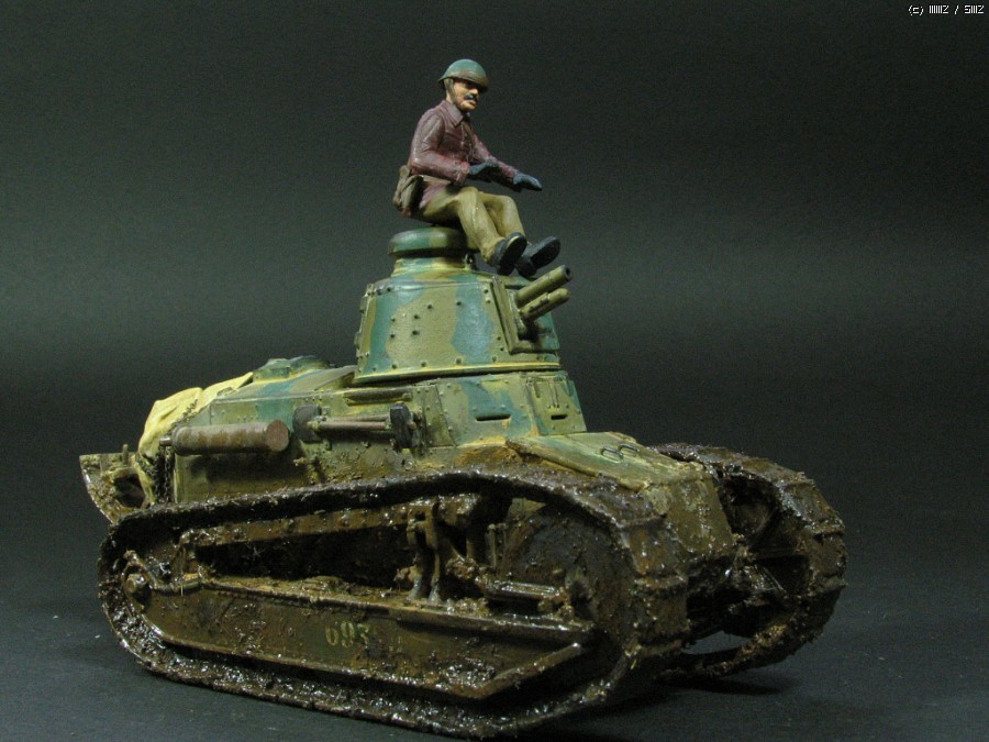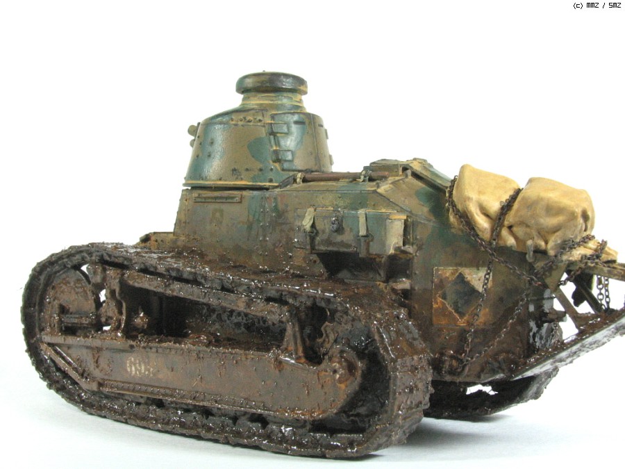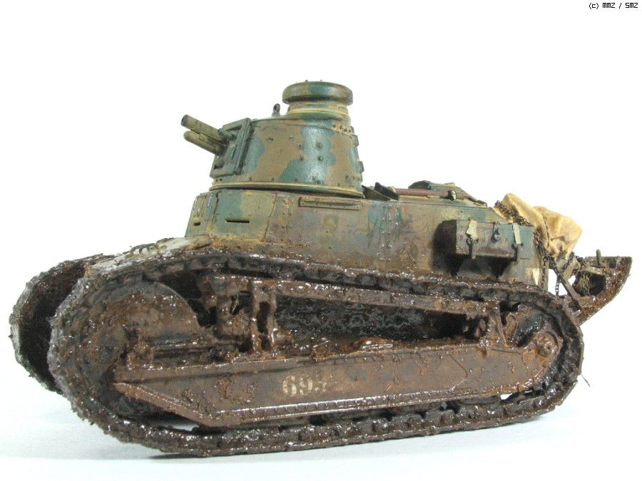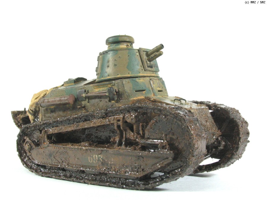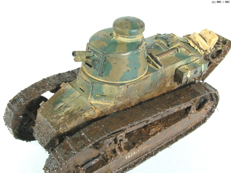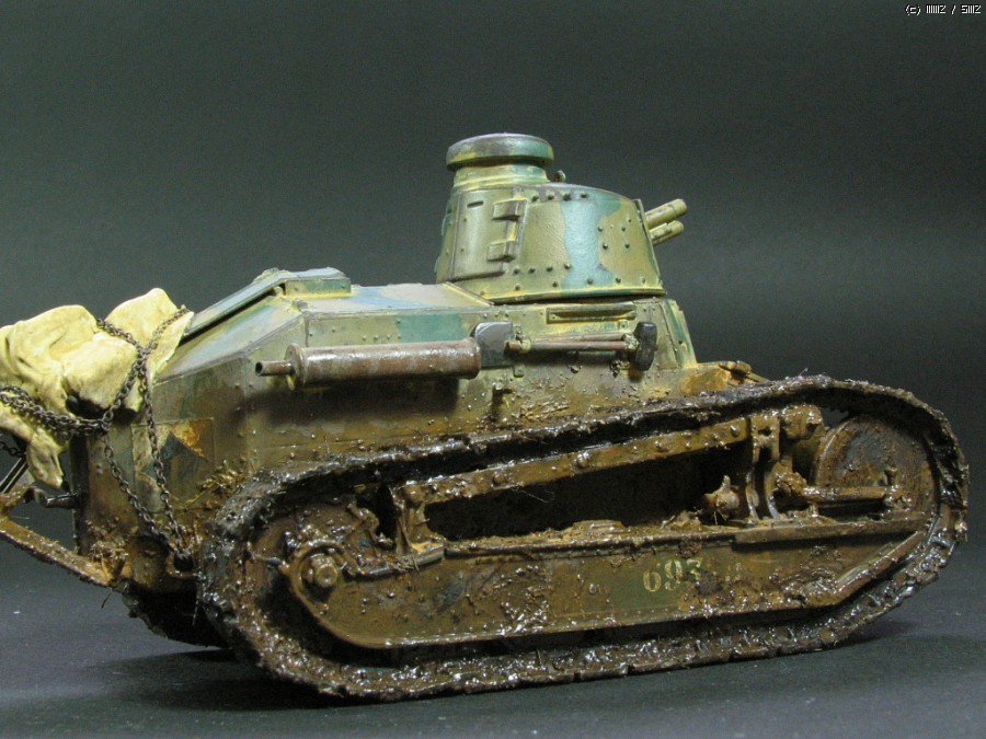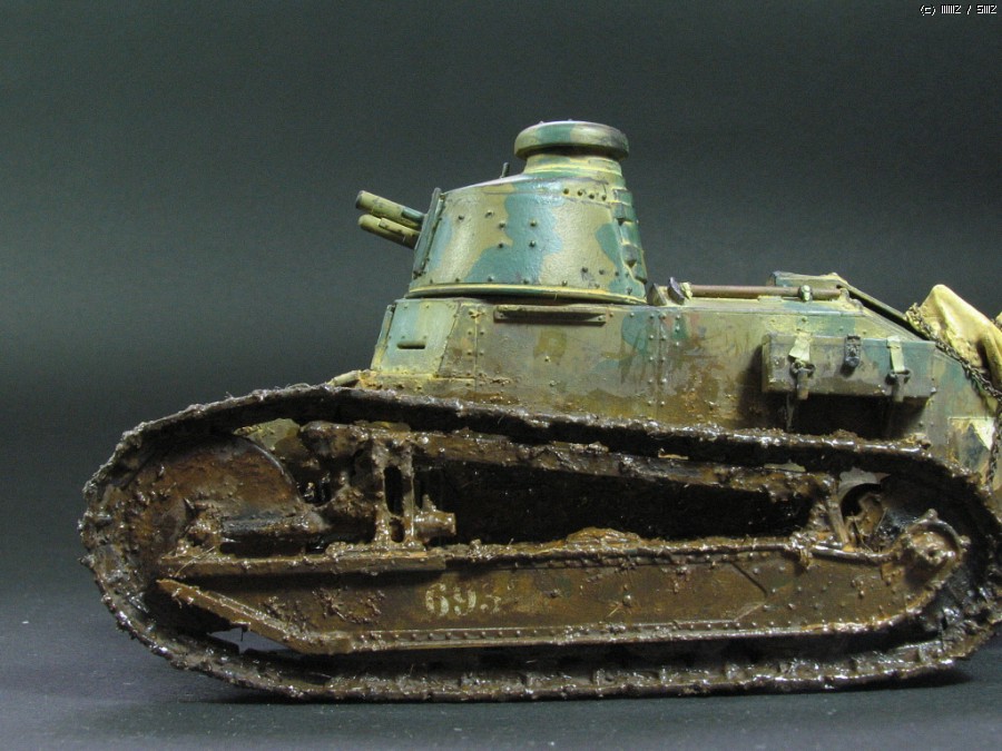 RPM 의 르노 FT 17 입니다. 장구류 묶는 벨트류 와 체인 제외하면 박스 그대로 만들었습니다. 궤도는 어떠한 접착제에도 붙지 않아서, 실로 꼬매고 로드휠에는 순간 접착제 떡칠을 해서 고정, 궤도의 엉성한 디테일을 감추려 진흙이 덕지덕지 붙은 것으로 캄프라치 했습니다.