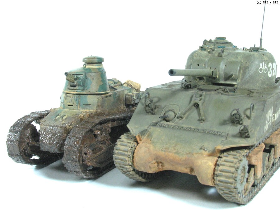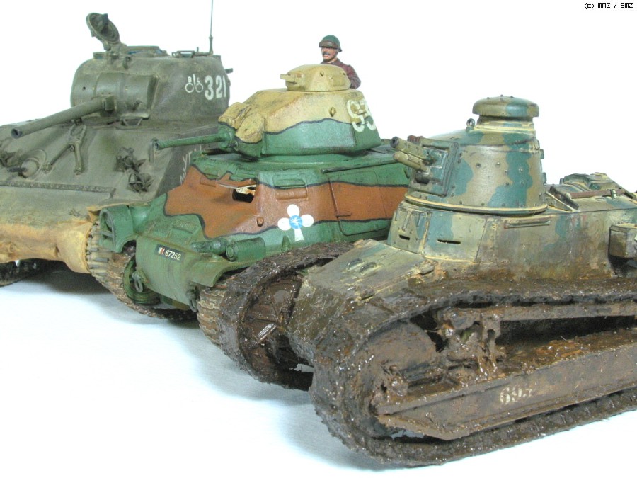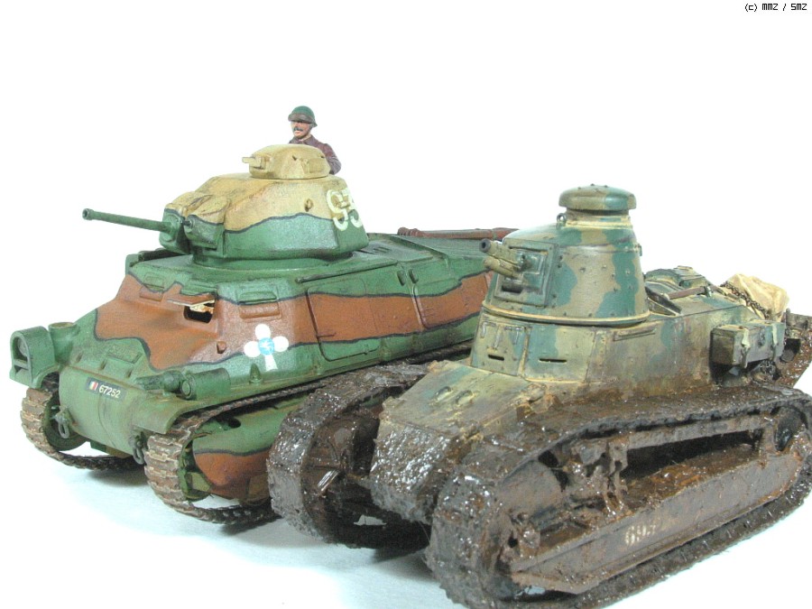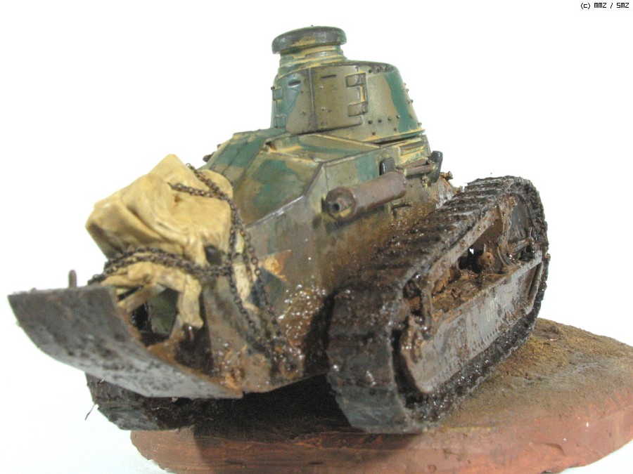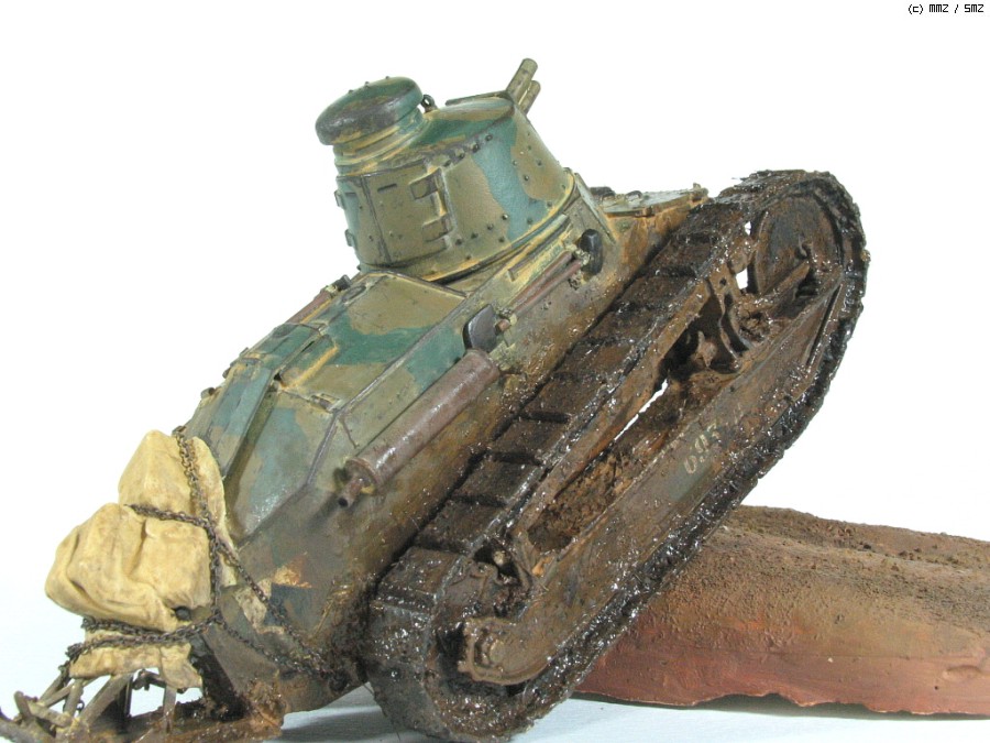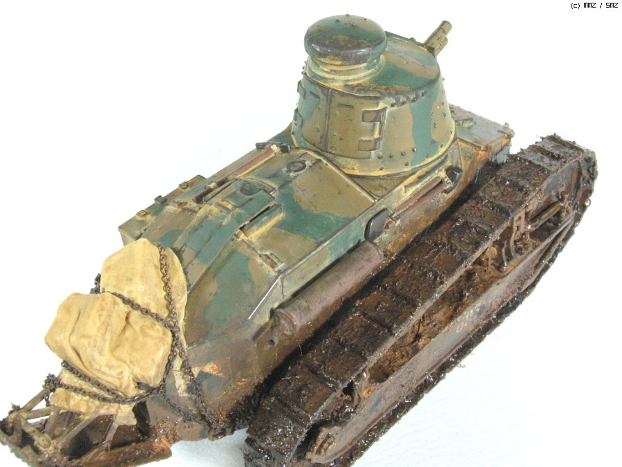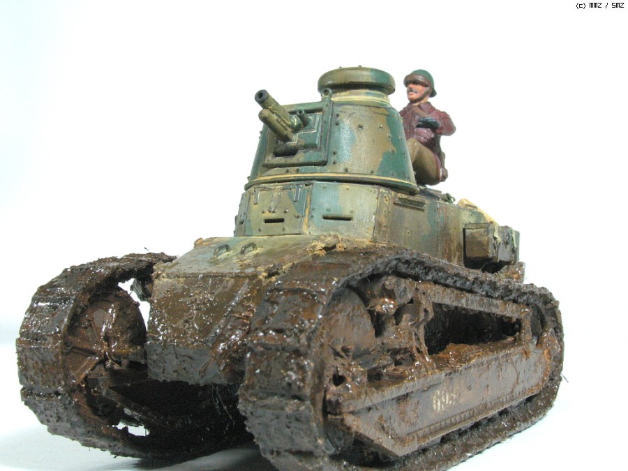 RPM 의 르노 FT 17 입니다. 장구류 묶는 벨트류 와 체인 제외하면 박스 그대로 만들었습니다. 궤도는 어떠한 접착제에도 붙지 않아서, 실로 꼬매고 로드휠에는 순간 접착제 떡칠을 해서 고정, 궤도의 엉성한 디테일을 감추려 진흙이 덕지덕지 붙은 것으로 캄프라치 했습니다.
