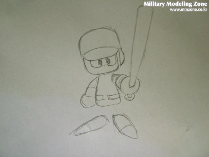 몸통에 팔과 배트를쥔 손을대보았더니....어느정도 포즈가 잡히는군요