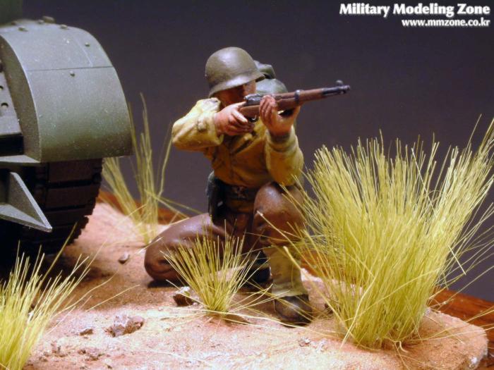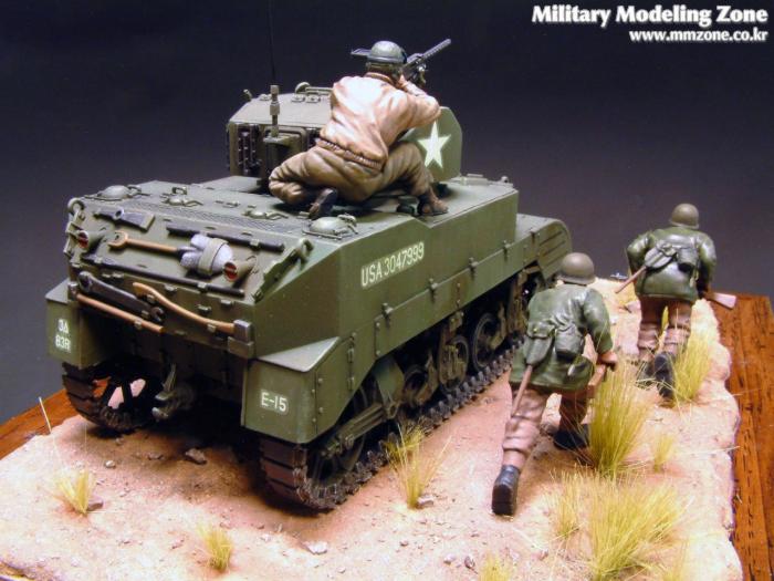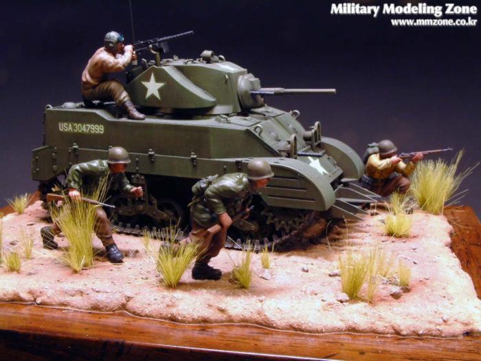 Tamiya 1/35 M5A1 light tank를 사용한 비네트 입니다. figure도 타미야제입니다. 베이스는 원목액자를 사용했습니다. 엔틱한 느낌이 나도록 액자에 광택이 나도록 했습니다.