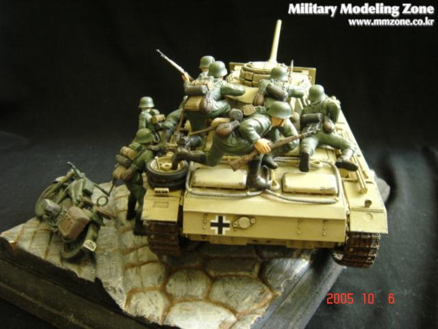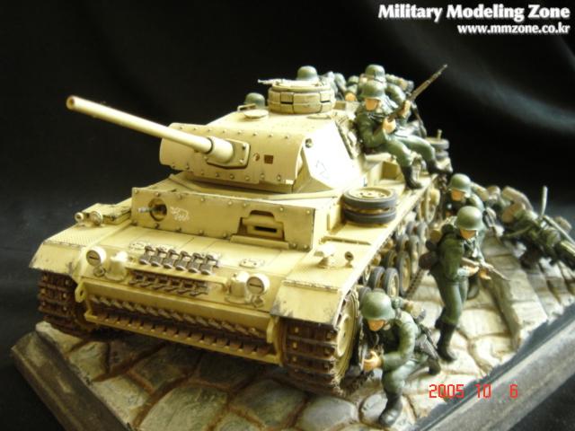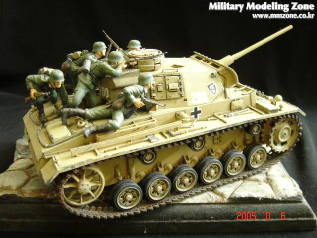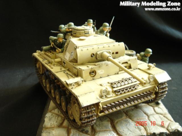 타미야 3호 전차입니다 기본색은 다크 옐로우 칠하고 기초강좌에 나온데로 먹선넣기,브러싱,웨더링 해봤습니다.