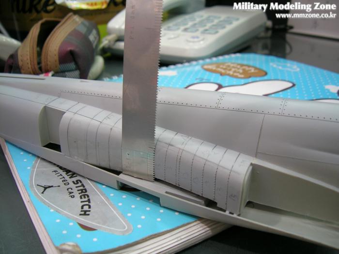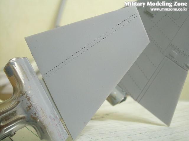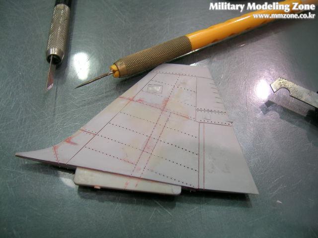 모형엔 거의 없는부분인데 실기에선 동체인테이크쪽의 리벳도 상당히많습니다. 연필로그린 후 리벳작업에들어갑니다.