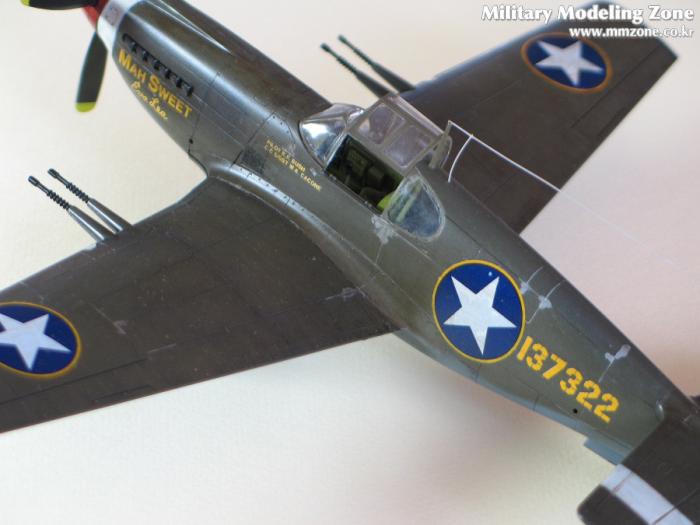 데칼은 원래 들어있는것을 이용했고, 일부는 aeromaster의 P-47용 데칼에서 임의로 가져다 썼습니다. 수직,수평미익의 하얀띠도 설명서에는 없지만 성조기를 붙이는게 너무 멋이 없을것 같아서 임의로 스텐실했습니다.