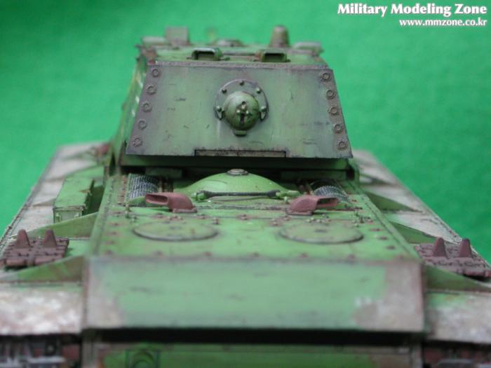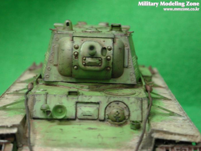 포탑의 근접사진 모든 모서리부분에 차체색에 검정색을 석어 에어브러쉬로 다크닝?을 했는데 너무 진하게 되어 필터링으로 가리느라 힘들었는데 그래도 어색하군요 군제의 웨더링세트중의 녹새으로 구석진곳에 녹슨표현을 해보았는데 이것도 너무 과하게 된것같습니다