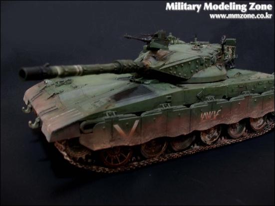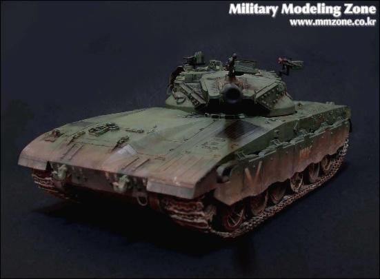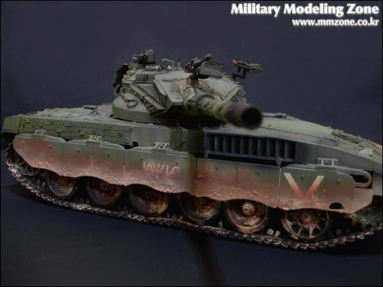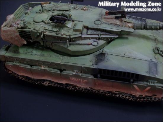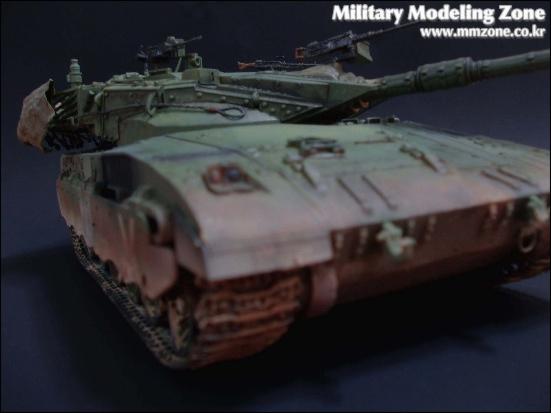 시나이 그레이라는 이스라엘군 특유의 차체 색상때문에 상당히 고민을 해서 많은 사진을 찾아보다가 시대별로 다른 색임을 알고 가장 마음에 드는 색으로 칠했습니다. 사이드 스커트에 퍼티를 발라 흙을 표현하고 유화로 워싱한 후 아크릴 검정으로 먹선겸 필터링을 '많이' 해주었습니다.