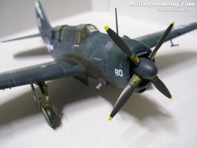 프로펠러엔 메탈릭컬러 다크 아이언을 뿌리고 이쑤시개로 긁어서 프로펠러가 긁힌 느낌을 내봤습니다. (검정으로 칠하고 은색으로 까기가 정석이지만.., 뿌려놓으면 검정이지만 긁으면 은색빛이 나는 메탈릭도료의 특성을 이용해서 장난을 쳐봤습니다. ^^;)