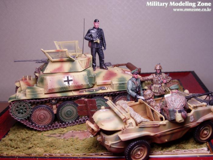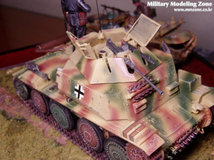 타미야의 슈피바겐과 마큐테의 정찰 탱크를 제작해서 작업했습니다.