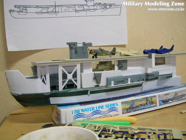 그래서 전 이걸 구체적인 모형으로 만들어보기 위해 집에서 굴러다니던 PT보트의 선체를 이용해 논스케일로 항공모함을 만들기로 했습니다.