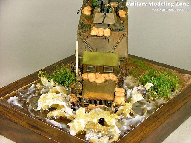 약3센티미터정도의 물의 깊이는 G-COAT WATER for Diorama에 XF-64레드 브라운을 섞어서 만들고,
