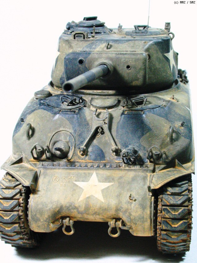 조립해 놓고 물끄러미 바라보다가 잠이 않와서.... 그냥 붓으로 칠했습니다. 드래곤 M4A3설명서에 제일 데칼이 많고 화려한 듯 해서 왕별 잔뜩 붙은 걸로 (위장색까지 더해서... ) 도장했습니다.