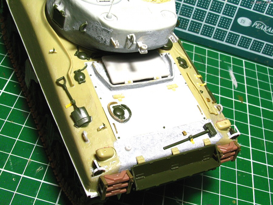 그림에서 회색은 드래곤부품 또는 퍼티이고, 노란색은 아카데미 슈퍼셔먼,녹색은 역시 아카의 M4A2,하얀색 또는 기타다른색은 자작한 부분입니다.