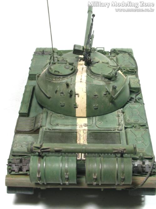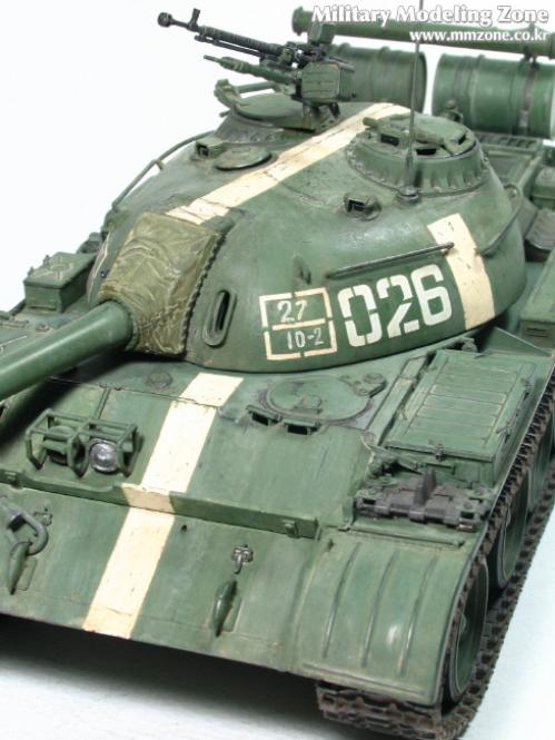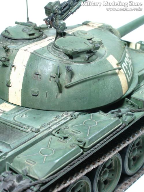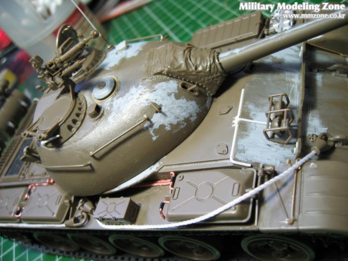 전차장석 전방 포수조준경?관측창?을 구형으로 바꾸고, 환풍장치 자작하고,우측 펜더의 작은 연료통 잡동사니 박스로 바꾸고,작은 연료통 은 좌측 펜더의 맨뒤로 가고, 각종 배선 간단하게 추가 했습니다......T-54 포탑의 동축기관총은 돌출되어있어서 런너 늘인걸로 가공.