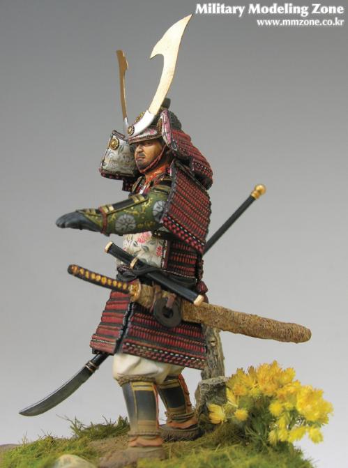 그동안의 일반 사무라이 피규어에서는 느낄수 없었던 세심한 디테일 표현이 압권이며,투구의 뿔(?)장식은 에칭부품으로 되어있습니다.