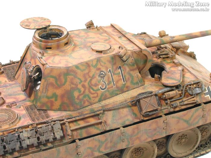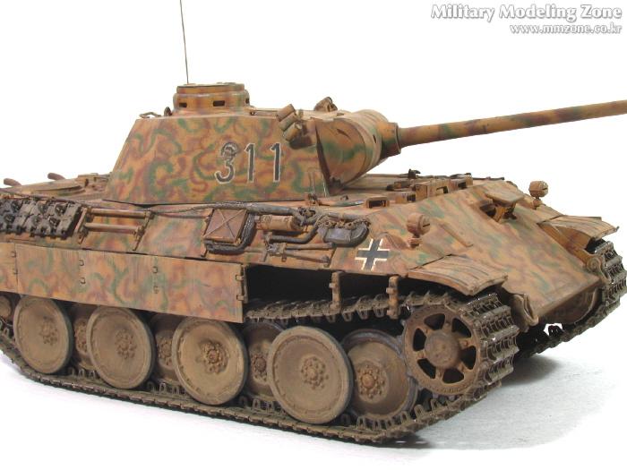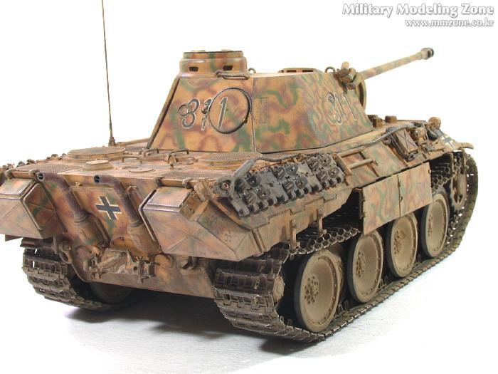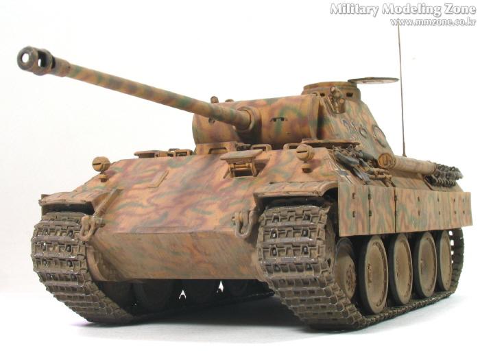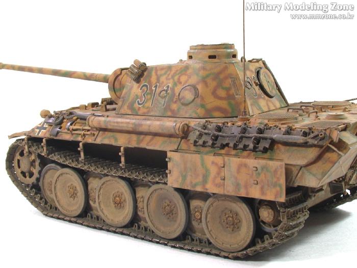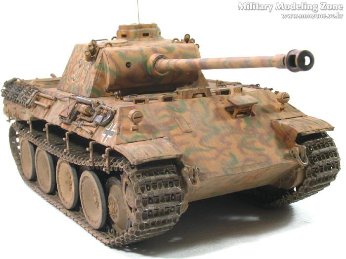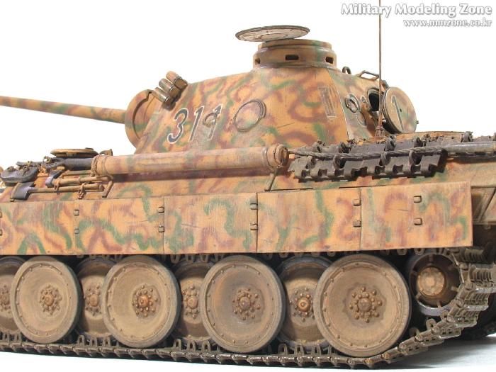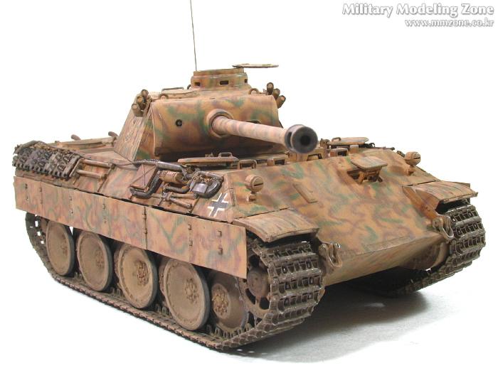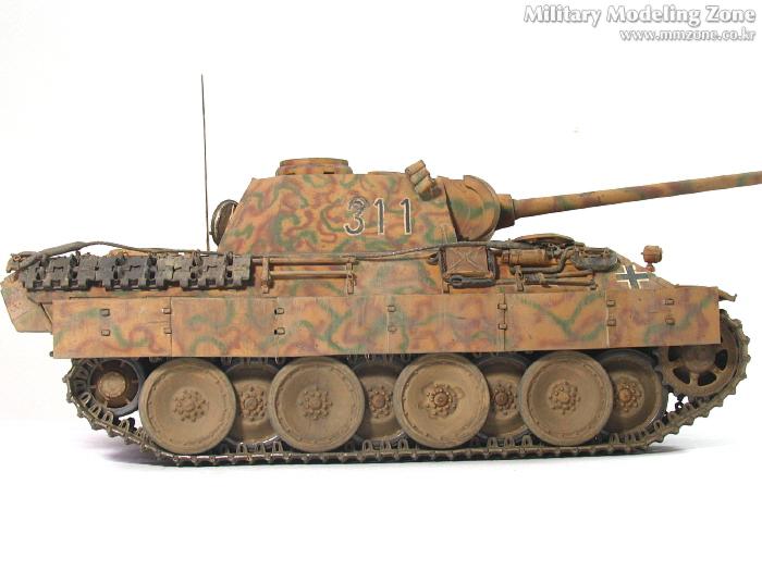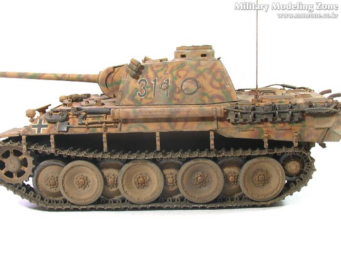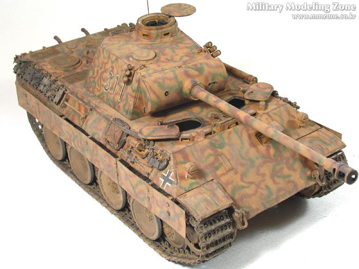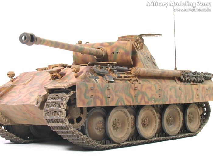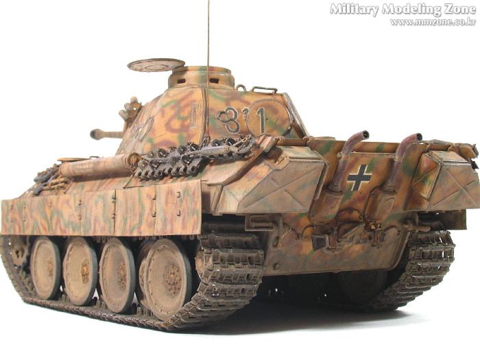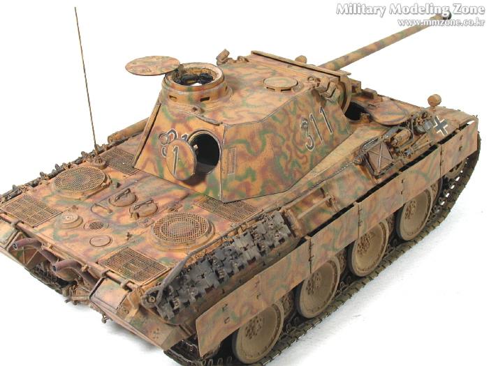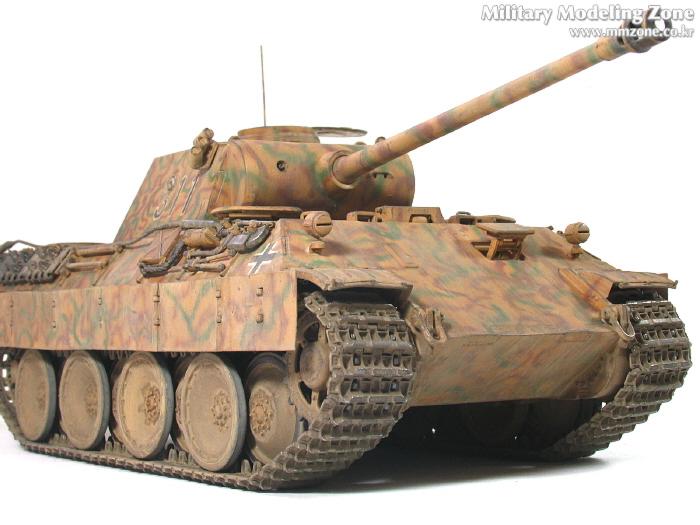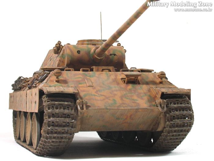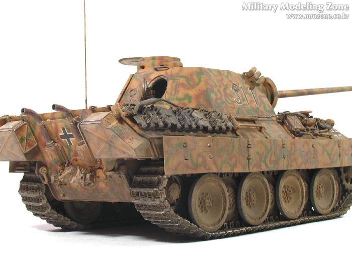 처음엔 박스 설명서에 제일 편한 단색으로 하려다가,아쉬워서 녹색 줄만 그었었는데, 데칼들은 다 깨지고 뭔가 허전하더군요. 자료도 없고.. 그래서...'디펜스코리아'에 "세계평화"님이 연재하고 있는 독일차량의 판터 D형에 '루마니아GD사단(뭔지는 몰라요)'소속 차량 일러스트 따라 도색했습니다. 좀더 복잡해야 하는데 기술부족으로 좀 약합니다.