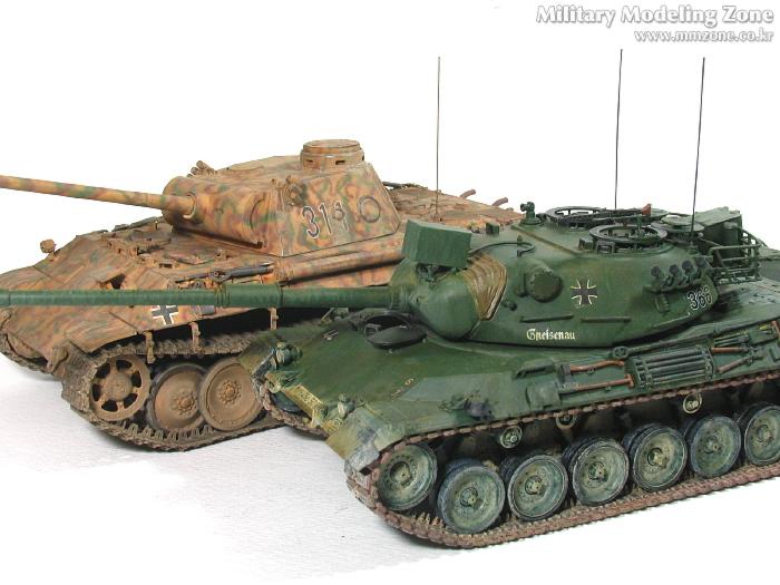 난생 두번째 완성작인 레벨(이탈레리)leopard1a4로 만든 '초기형 레오파드1'와의 비교 입니다. 아시는 분은 잘 아시겠지만,레오파드1은 2차대전후 독일이 처음으로 만든 주력전차입니다.판터의 그늘이 너무나도 짙게 배어있는 차량이고, 제가 만든 두가지가 모두 초기형이라, 재미삼아 비교해 보세요.