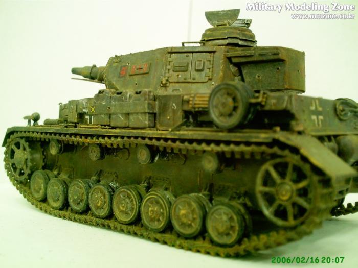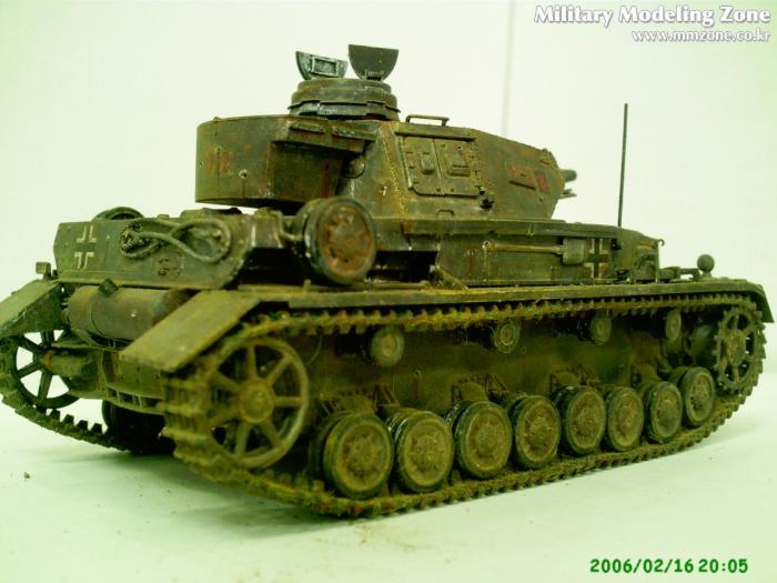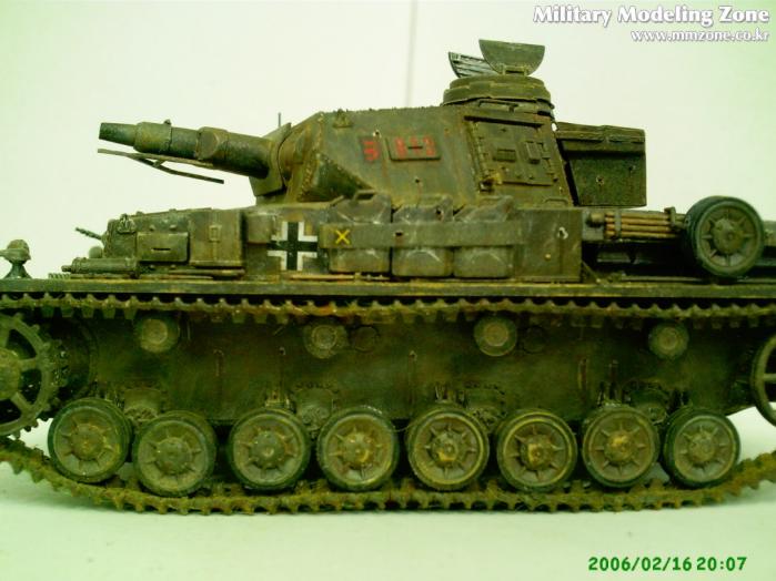 기본도색으로 타미의 건메탈로 전체 도장하구 메탈릭그레이, 저먼그레이순으로 다시 전체 드라이브러싱, 실버로 까기 살짝한 후,수성물감 흰색으로 동계시도하다 망쳐서 닦아냈는데 의외로 분위기가 좋더군요(제생각이지만...ㅎㅎㅎ) 러스털과 험브롤로 녹표현 살짝해주고 피그와 흙으로 웨더링 마무리 했슴다.