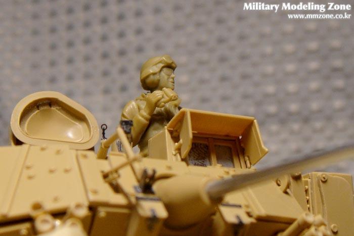 한편으로는 영국군의 워리어 장갑차를 보는 것 같은 앵글입니다. 전차병은 91년정도에 구입한 벨린덴의 이스라엘 전차병 세트 중 유일하게 잃어버리지 않은 1명을 임시로 올려놓아 보았습니다. 반신상이니 포수의 해치를 닫고 임시로 그 위에 잠시 올려보았는데 확실히 인형을 태우기 전과 태우고 나서의 느낌이 많이 다른것 같습니다.