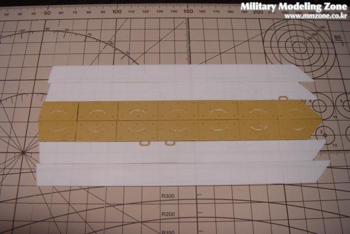 이번에 소원을 이룬 부분 중의 하나가 포탑과 부시마스터 기관총의 연결부에 디테일 업을 할 수 있었다는 것입니다. (그전의 프라스틱 부품이 좀 심하다 보니) 이 역시 김형민님의 작례를 보면 제딴에는 붙일땐 죽겠다고 붙였지만 갑자기 사람이 간사해(!)지게 됩니다. 저 부분말고 에듀어드도 제대로 구현해놓지 않은 부위도 있고 만텔의 먼지막이 등 만들어넣어야 할 부분이 많죠. 언제 사놨는지 기억도 안나는 황동판이 한장 있어 저도 금속공예(?)를 할까 하다가 마음을 비우고 0.3mm 플라판을 재단해놓았습니다.