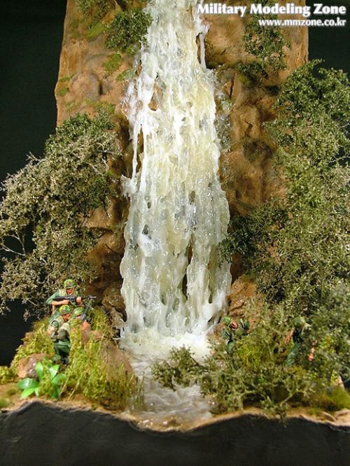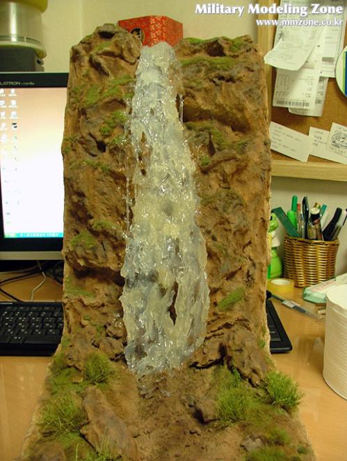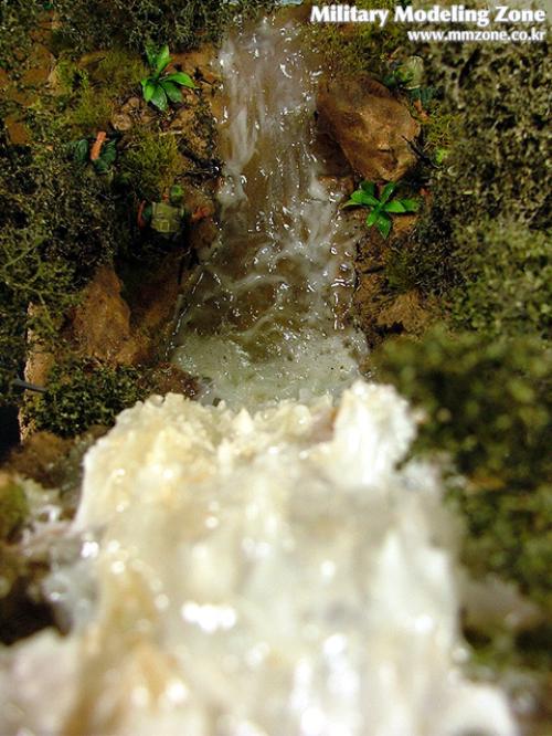 폭포의 가장 끝부분에는 포말효과를 좀 더 주기위해 시닉워터에 물세제를 넣고 거품을 만들어 보았습니다.