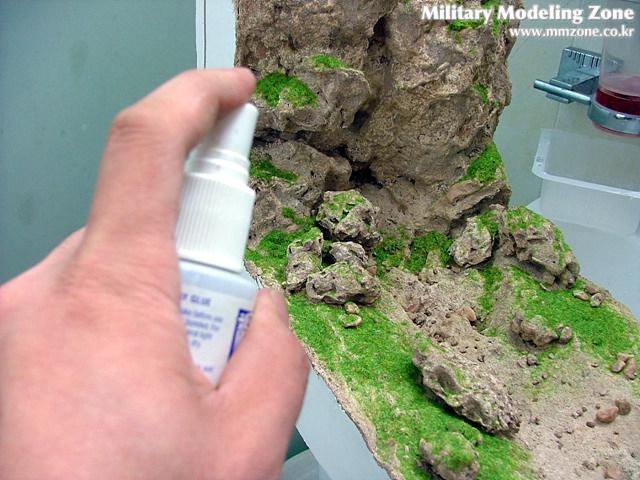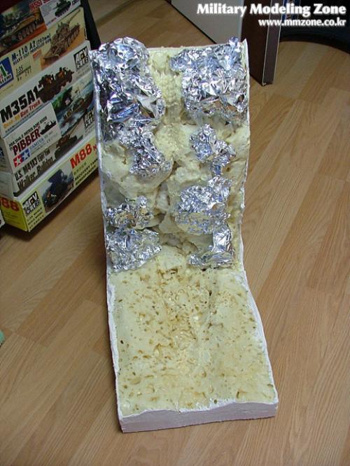 그 위에 쿠킹호일을 사용하여 세밀한 바위와 계곡을 묘사한뒤,