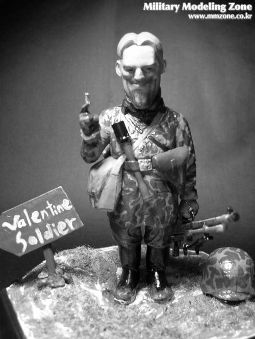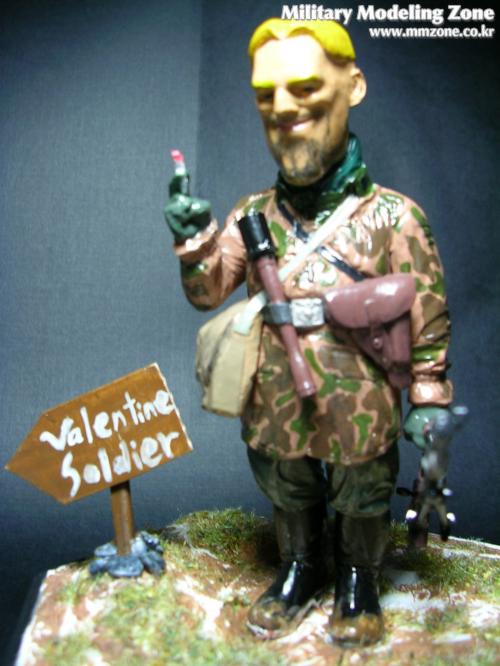 첨으로 만들어본 figure입니다.발렌타인데이 선물로 받아 발렌타인 솔져로 이름지었구요...첨만든거라 많이 어색합니다..도색은 아카제 에나멜로 했구요..고증무시하구 필받는데루...ㅋㅋ