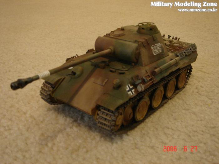 다시 촬영하였습니다. 보시기 어떤지..^^ 타미야 1/35 짜리 panther Ausf A입니다. 처음에 조립하고 도색을 위해 고심을 하다가 삼색위장에 대한 원사진이 찾기 힘들어 기본개념을 제가 군에서 입었던 군복의 삼색위장을 생각하면서 도색해 보았습니다. 아직 많이 부족한 점이 많은데.. 여기 미국에서 메일로만 조언을 받으니 답답하군요.