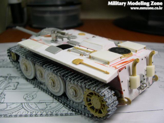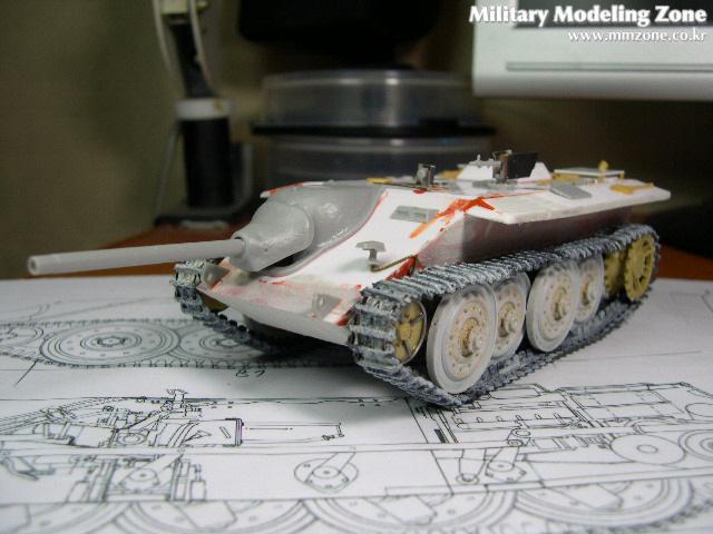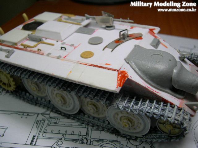 주포부분은 드래곤제의 햇져 것이며 그밖에 4호전차의 메인 휠및 케터필러등을 사용했습니다. 그밖의 차체는 프라판으로 자작을했으며