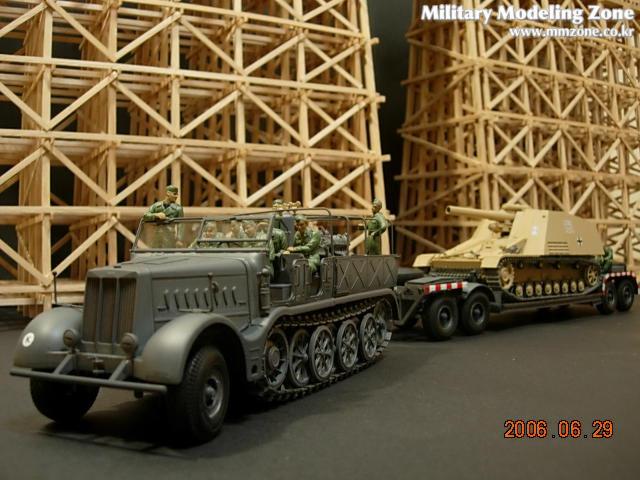트레일러 위에 4호 차대는 아직 제가 위장색을 칠할 실력이 못되서 그냥 단색으로 붓도장한 것입니다....