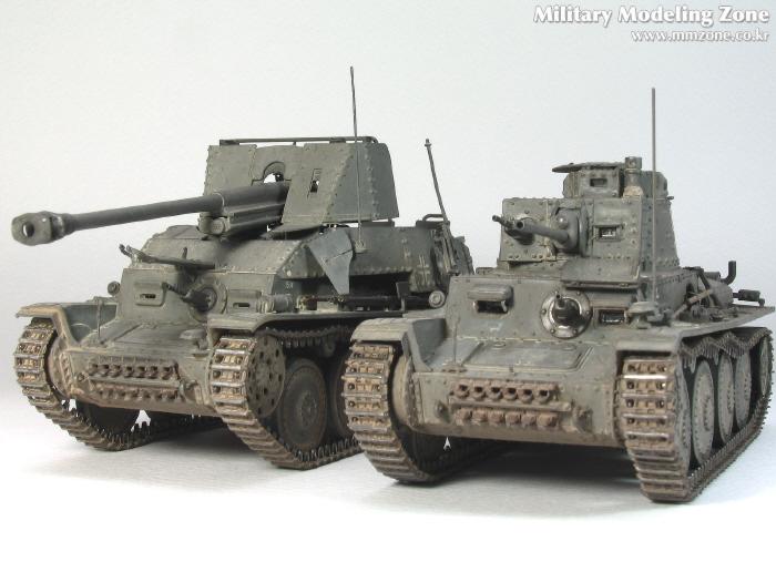 트라이스타에서 새로 발매된 Pz.Kpw.38(t) Ausf.E.F와 타미야의 Marder III입니다. 마더는 예전에 조립되었던 것을 재도색 했고, 38(t)는 새로 만들었습니다(당연히^^). 둘의 설명서를 보니 같은 사단(7사단), 같은 년도(1943年)의 데칼이 있어, 둘은 같은 전선에 있던 걸로 설정했습니다. 웨더링도 같은 방식으로 했고,,,..