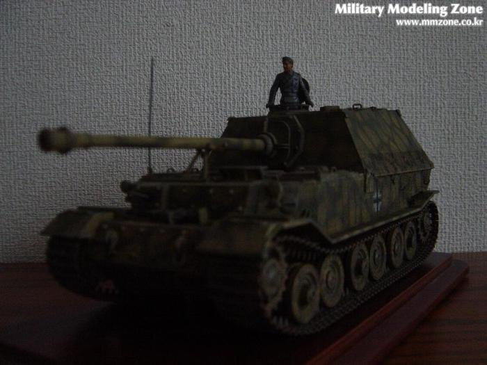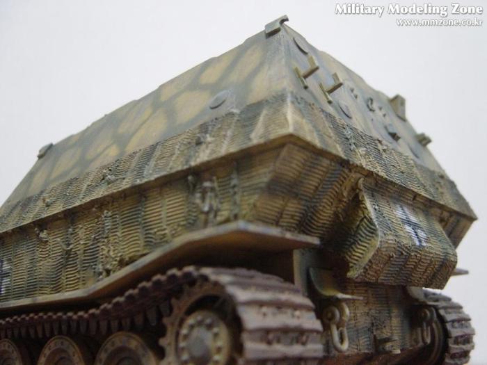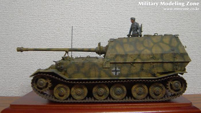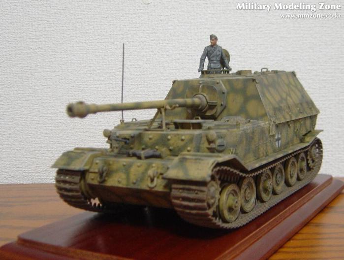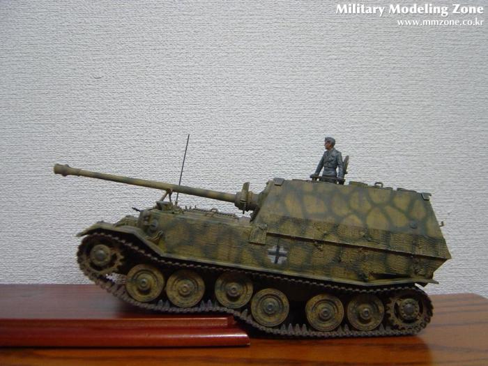 키트에 들어있던 데칼은 쿠르스크전 당시의, 그러니까 일명 페르디난트라고 불리던 당시의 656연대 1대대(653) 및 2대대(654)를 기준으로 구성되어있고 헤드라이트도 달려있었으나 개조이후 특성인 기관총부가 달려있고 키트명칭도 엘레판트로 되어있어 다소 혼란스러웠는데, 친절하신 두 회원님들 덕분에 그나마 개념 정리하고 나름대로 완성해 보았습니다.^^ 그럼에도 여전히 고증에 관해서는 찜찜함이 있음을 고백안할 수 없네요. 혹시 지적해 주신다면 감사한 마음으로 배우겠습니다.