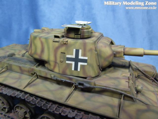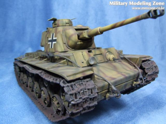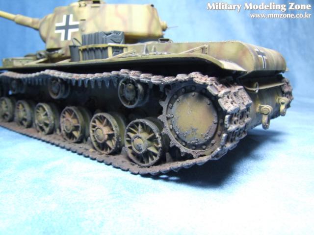 트럼페터의 1/35 KV-1 전차의 독일군 노획형입니다. 오랜만에 완성한 탱크이고 1/35 스케일로는 세번째로 만든 탱크입니다. 설명서대로 스트레이트로 작업하고 락카로 기본칠을하고 위장무늬는 에어브러쉬를 이용해서 프리핸드로 뿌려주었습니다. 유화와 파스텔을 이용 웨더링을 하고 G-코트사의 머드와 샌드등을 이용해서 궤도에 묻은 진흙을 표현해 보았습니다. 킷의 장점은 세미커팅식 궤도의 표현이 정말 좋습니다. 자체 중량에 의해서 늘어진 표현이 참 좋았습니다. 그외에는 잔손질이 많이 가는 킷이고 밀핀자국이 많아서 고생을 좀 했습니다. 비행기만 만들다가 오랜만에 큰 스케일의 전차를 만들어 봤는데, 이런 저런 기법도 시도해보고 나름대로 좋은 작업이었습니다. 그러나 전차에 대한 자세한 지식이 없어서 상상으로 만들거나 칠한 부분도 여럿 있습니다. 잘못된점 있으면 가감없는 지적 부탁드립니다.(저는 비행기 만드는게 그나마 나을것 같습니다. 다음에는 비행기로 찾아뵙겠습니다.)
