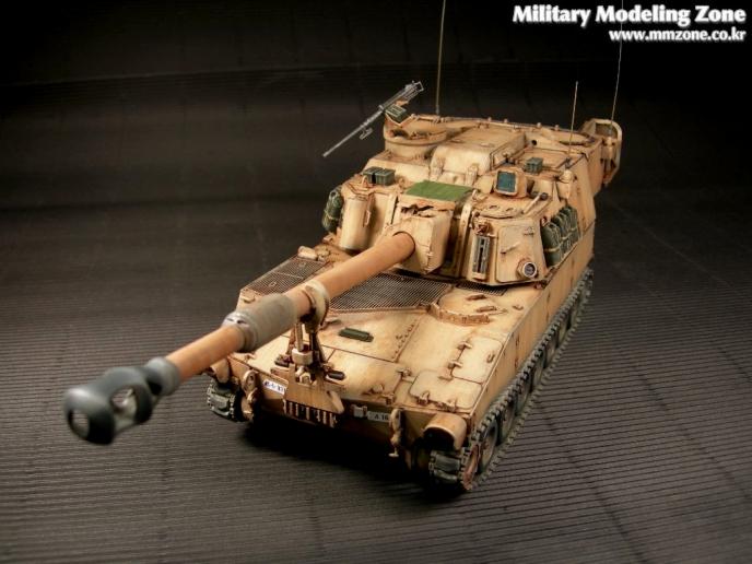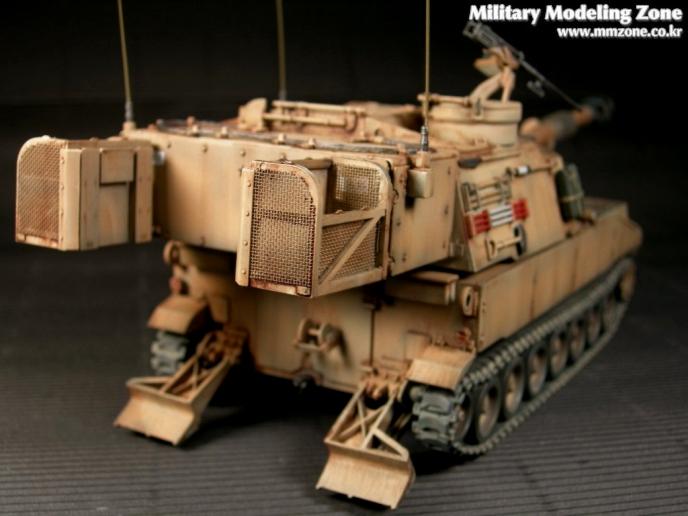도색예는 걸프전 참전형식으로 했고 제품내용으로만 스트레이트 작업을 해도 멋진 자주포전차를 만들수 있었던 것 같고 바스켓부분만 에칭조각으로 좌우 가동이 되게끔한 것이 유일한 디테일업이라고 할수 있을것 같네요.