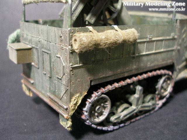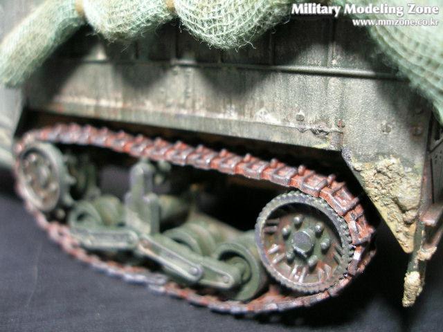 세미나 제품인데 속이 텅비었구요, 프라모델 보다는 모터용 완구더군요, 내용물 제거하고 껍데기만 조립하고 심한 웨더링과 물티슈,붕대로 장비 추가해 보았습니다. 캐터필더와 차체에 녹슨 표현을 처음시도 했습니다.타미야제도 가지고 있는데 잘 표현해서 빠른시일내 올리겠습니다.