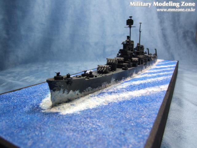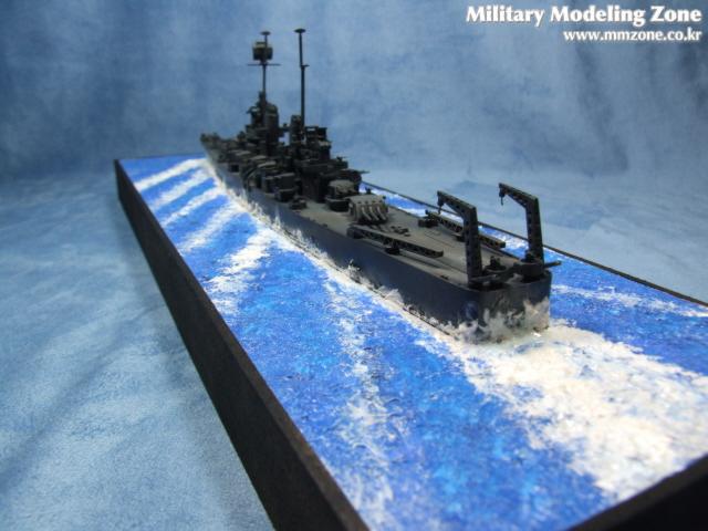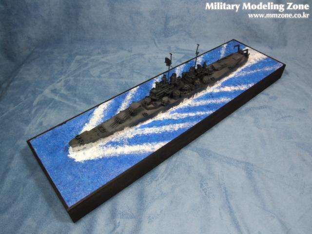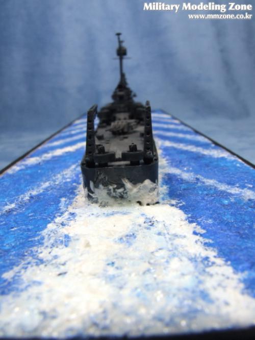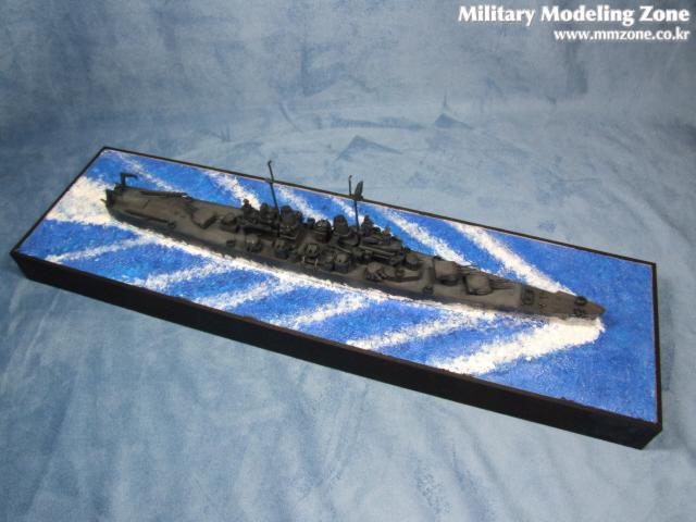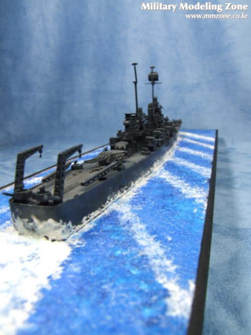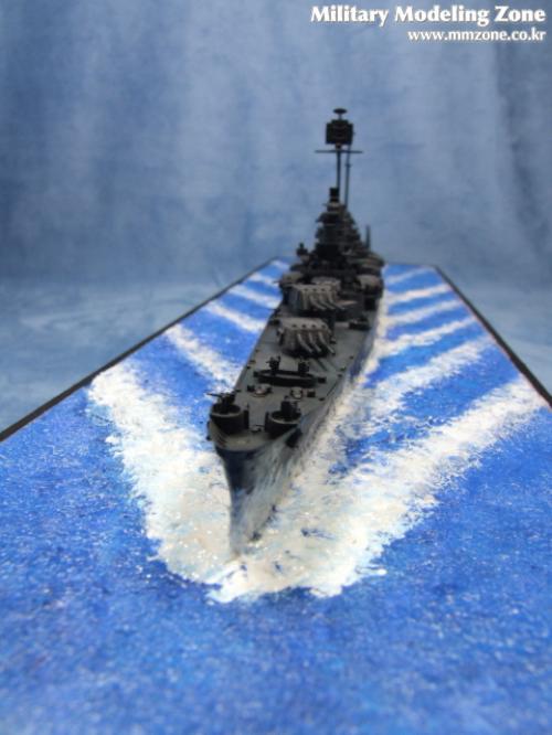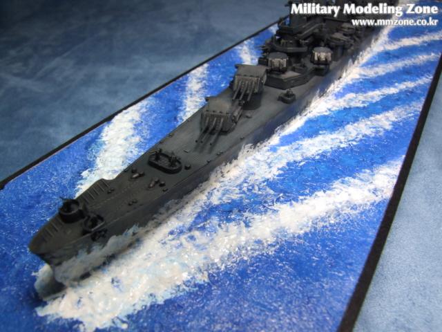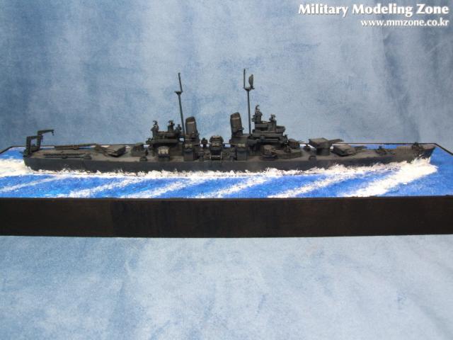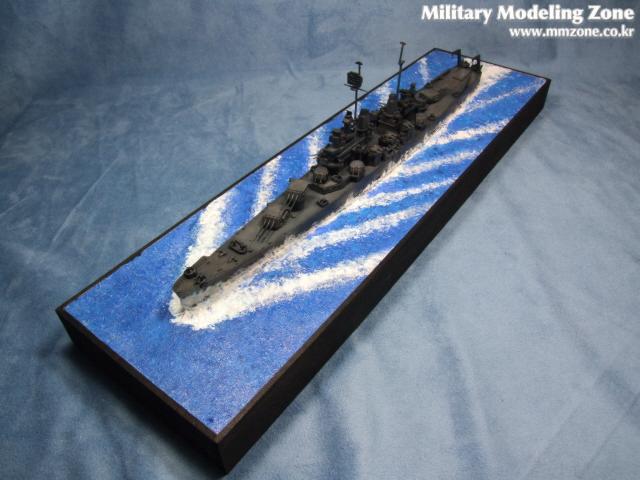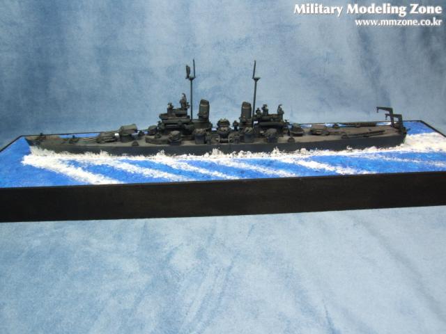 처음으로 도색까지 마친 배입니다. 예전에 아카데미 1/700 니미츠를 만들어 본 이후에 근 15년만에 도색까지 마무리하고 받침도 만든 첫 작품입니다. 함선에 관한 지식이 없어서 킷에 포함된 도색 가이드를 참고로 도색하였습니다. 당연히 조립은 스트레이트입니다. 킷은 트럼페터사의 1/700 USS BALTIMORE CA-68 1943입니다. 스트레이트 조립후 군제락카 NAVY BLUE를 도색하고 같은색에 밝은색을 더해서 색감만 조금 바꾸어 주었습니다. 도색후 먹선을 넣고 약간의 파스텔로 웨더링을 했습니다. 리깅은 전혀 지식이 없기 때문에 포기 했습니다.(어디를 연결하는지 몰라서......) 바다의 표현은 푸른색 포맥스를 알맞게 자르고 그위에 킷을 올리고 겔미디움과 모델링페이스트 그리고 아크릴 물감을 이용해서 만들어 주었습니다. 파형이 좀 인위적으로 보여서 실망입니다. 그러나 처음 시도한 만큼 역시나 많은 공부가 되었습니다.