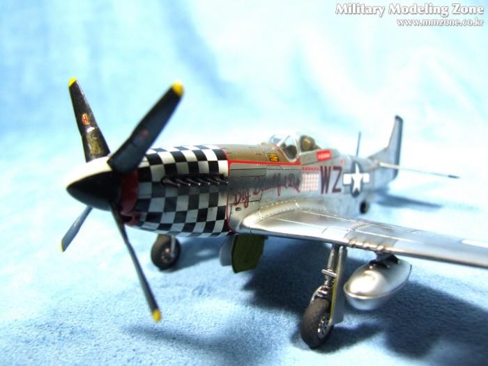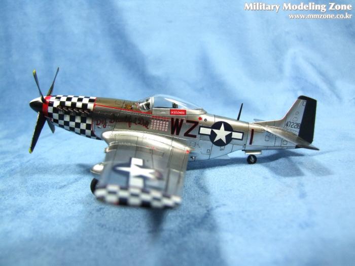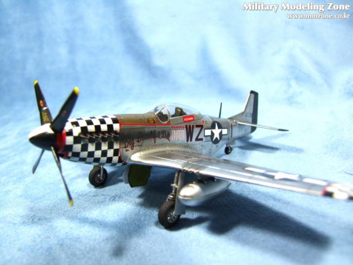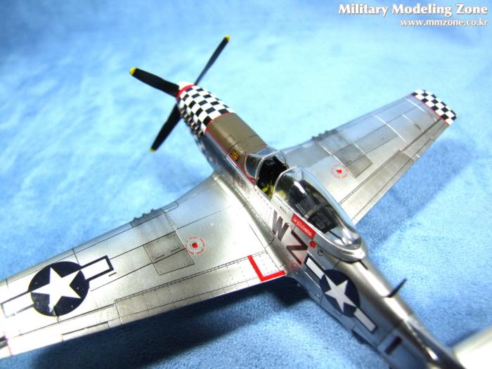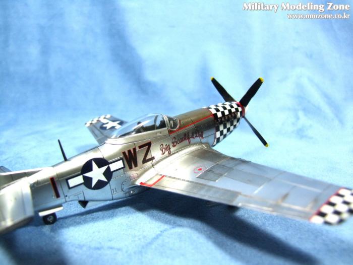 1/72 타미야 P-51D 무스탕입니다. 지금까지 발매된 동 스케일의 무스탕중에 가장 결정판이라고 생각합니다. 간단한 부품수에 좋은 디테일그리고 우수한 품질에 데칼......조립은 스트레이트로 하였고 MR Hobby의 슈퍼메탈릭중 슈퍼파인실버로 도색을 하고 패널마다 약간의 변화를 주었습니다. 웨더링은 간단하게 그을음 정도만 표현하고 클리어로 마무리 하였습니다. 에어로를 처음 접하는 분들에게 추천하고 싶은 킷입니다. 가격도 저렴하고 조립도 간단하고 단차도 거의 없어서 초보자가 만들기에 좋은 킷입니다.