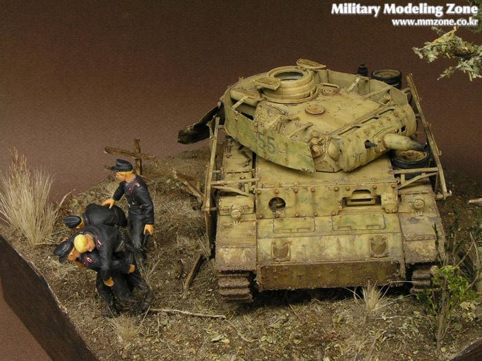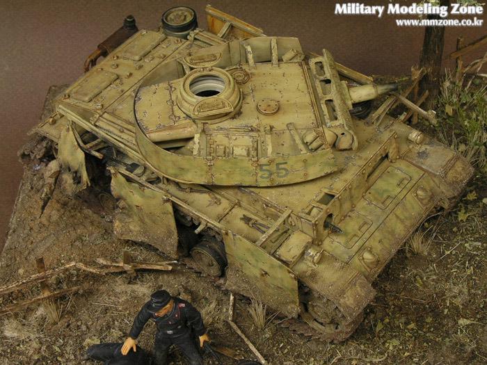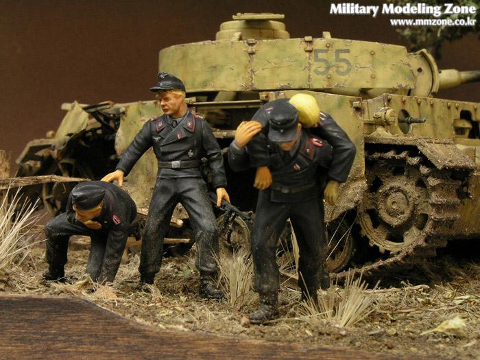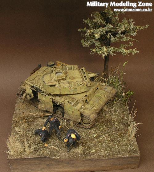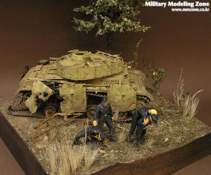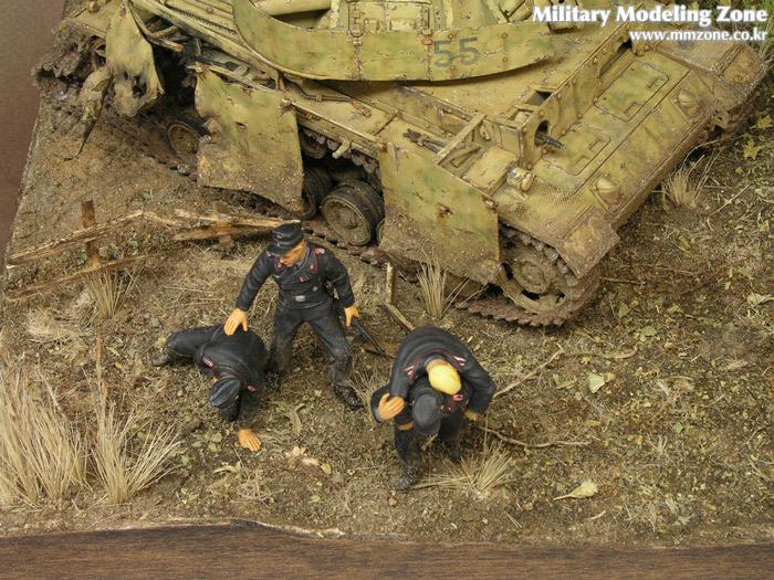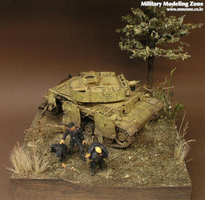 처음에 나무를 만들어서 이용해보자, 방치되있던 3호전차도 이용하고 어려운 검은색 전차병들도 만들어보자란 취지에 시작한 디오라마입니다..^^