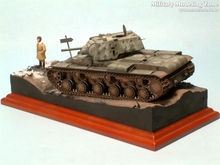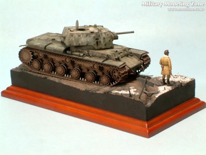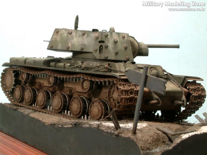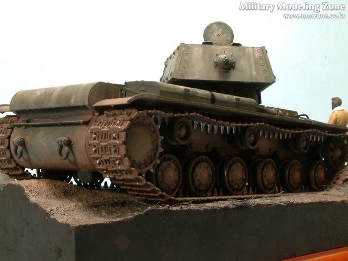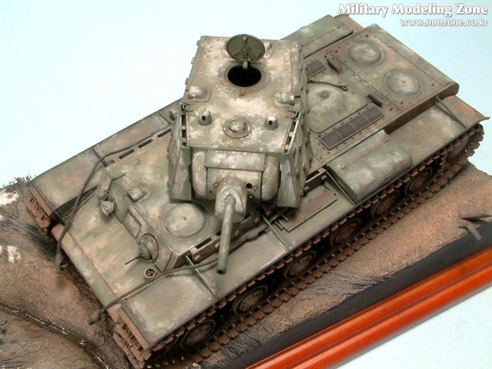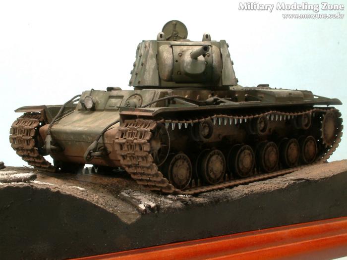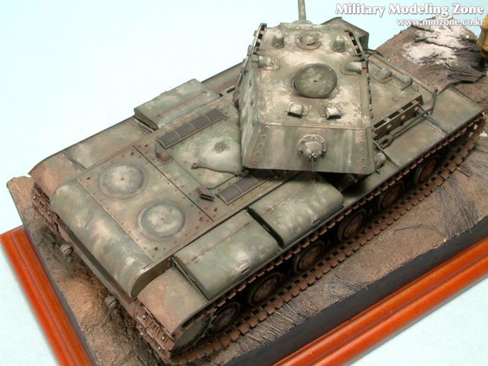 KV-1E의 제작은 락카 저먼그레이 밑칠후에 락카 러시안그린(2)로 그라데이션 칠을 해주고, 이후에 험브롤 화이트로 동계위장을 아주 약하게 해주고 면봉으로 좀더 벗겨내준 상태로 완료한뒤에 웨더링을 해주었습니다.