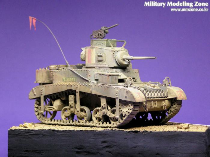 차체의 색칠은 박스아트에 나와있는 전형적인 영국군의 2색버전으로 칠하였습니다. 박스아트에서는 너무 유아틱하게 화려한 색감으로 되어 있는 관계로 고증과는 무관하게 상당히 묵은^^ 느낌을 주려고 별도로 조색한 색을 사용하였습니다. 아크릴밑색위에 험브롤과 유화로 약4회정도 워싱과 필터링을 해주었고 부분부분 효과를 넣어준 뒤에 파스텔로 먼지앉은 효과를 표현해 보았습니다.