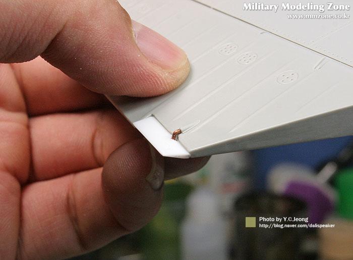수평꼬리날개의 끝부분에 있는 보조 러더를 손봤습니다...