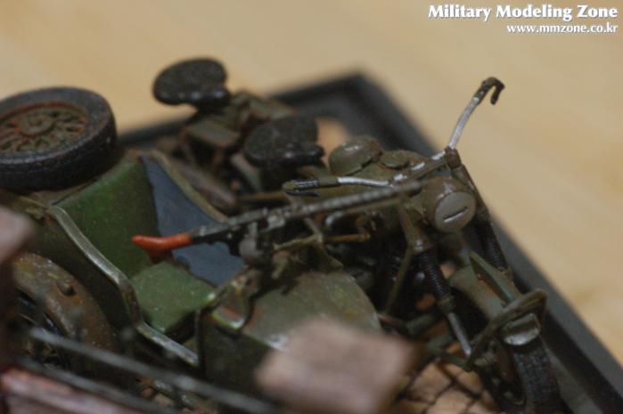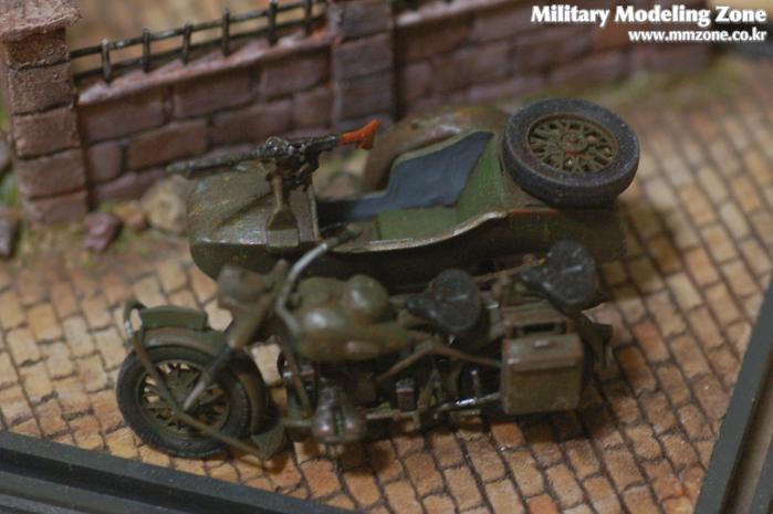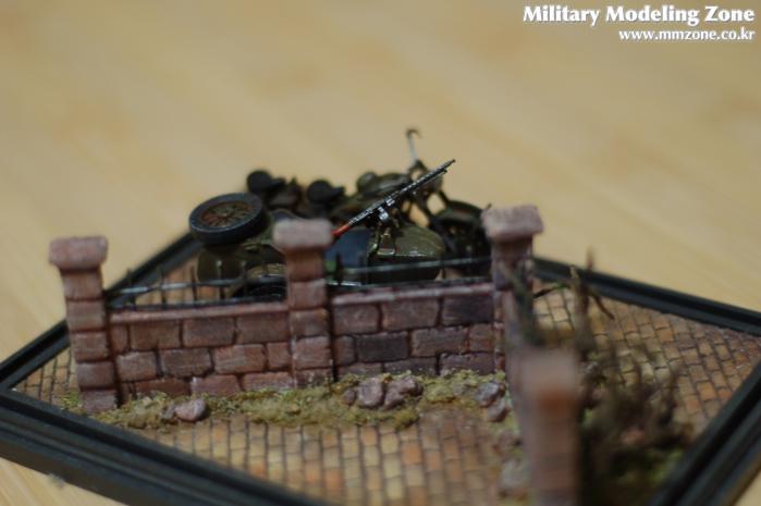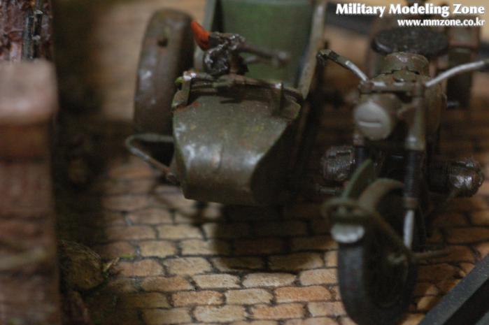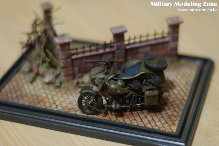 베이스와 벽체는 우드락으로 조각을 하고, 핸디코트를 물에 개어 여러번 발라 주었습니다. 나무는 철사를 꼬으고, 톱밥과 목공용본드를 버물서 질감을 냈습니다. 베이스와 벽체는 아크릴물감으로 색칠했구요, 오토바이는 락커와 에나멜, 아크릴물감으로 칠했습니다.