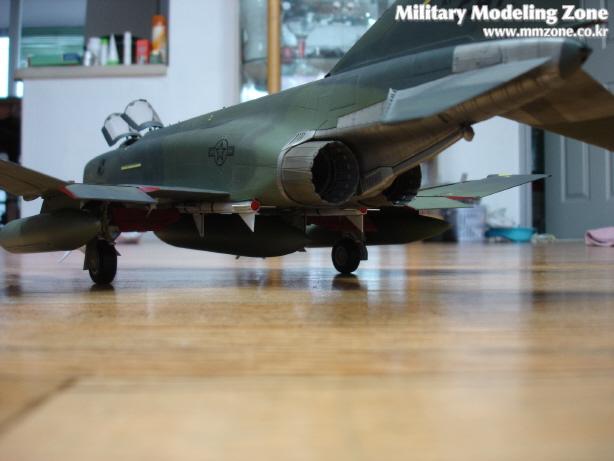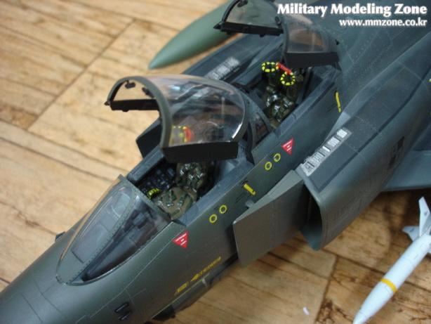 조종석 부근입니다. 계기판은 CEC의 F-4G conversion set것과 좌석은 Tac-scale 것을 사용했고, 캐노피 프레임내부의 돌기물과 반사경은 적당히 만들어 넣었습니다. CAM데칼은 그 크기가 실제마크보다 조금 큰 것들이 몇개 있어 좀 어색한 감이 있습니다. 실기에는 캐노피 프레임에 조종사 이름이 있을텐데 쓰다남은 데칼을 모아놓은 박스를 뒤져도 적당한 놈을 찾지 못해 결국 붙이지 못했습니다.