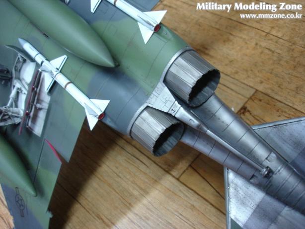 예전에 타미야 F-4J형을 완성했을 때 노즐이 좀 작아서 동체와 틈이 많이 벌어진다는 것을 발견하고는 많이 아쉬웠는데 노즐 직경을 확장했더니 좀 더 나아진 것 같네요. 사실 타미야 E형 노즐과 CEC E형 노즐, 레벨E형노즐은 직경은 모두 거의 같습니다. 결국 타미야의 뒷동체부분이 좀 과장되어 있는 것 같습니다. 노즐과 후부동체의 맨금속은 최근에 나온 군제 금속특색을 사용했더니 워싱과 먹선넣기가 모두 가능하여 참 수월하게 작업했습니다.
