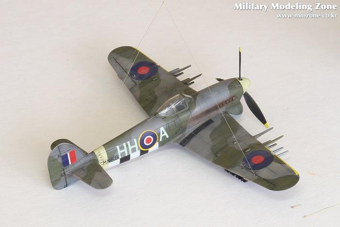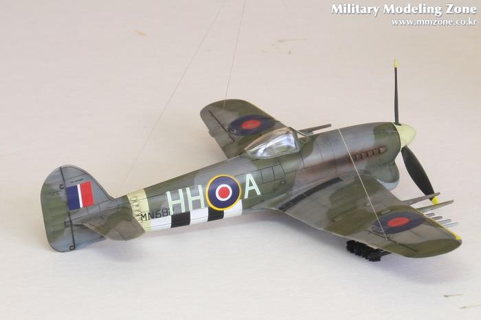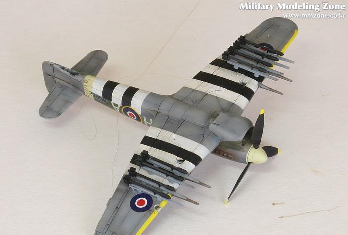 Hawker Typhoon입니다. 도색은 하세가와 1/48설명서를 참조로 했읍니다. 인베이젼 스트라이프만 스텐실하고 나머지는 키트의 데칼입니다. 웨더링은 살짝 해주었읍니다.