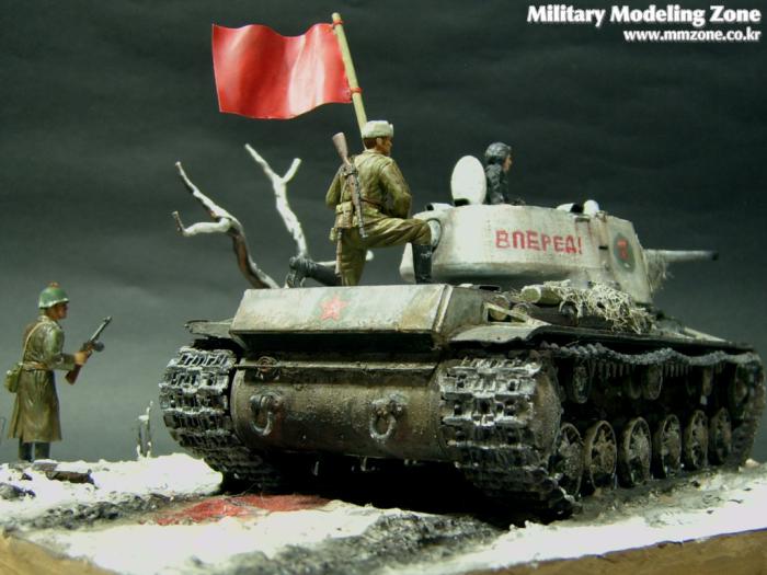 예전에 만든 KV-1에 베이스 작업을 해서 간단한 비넷을 연출해 보았습니다.